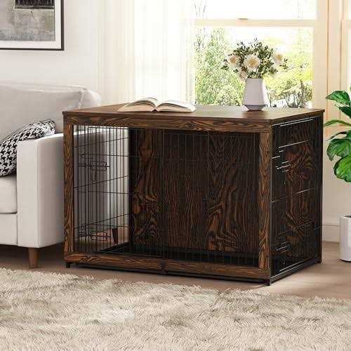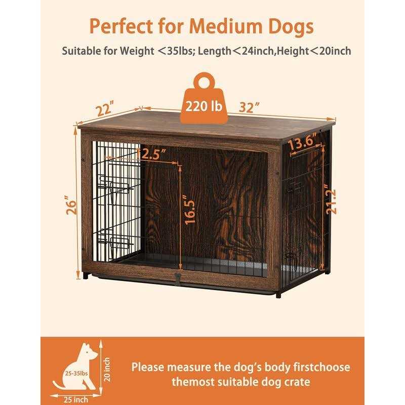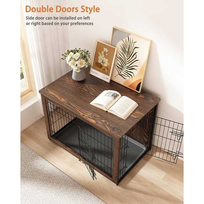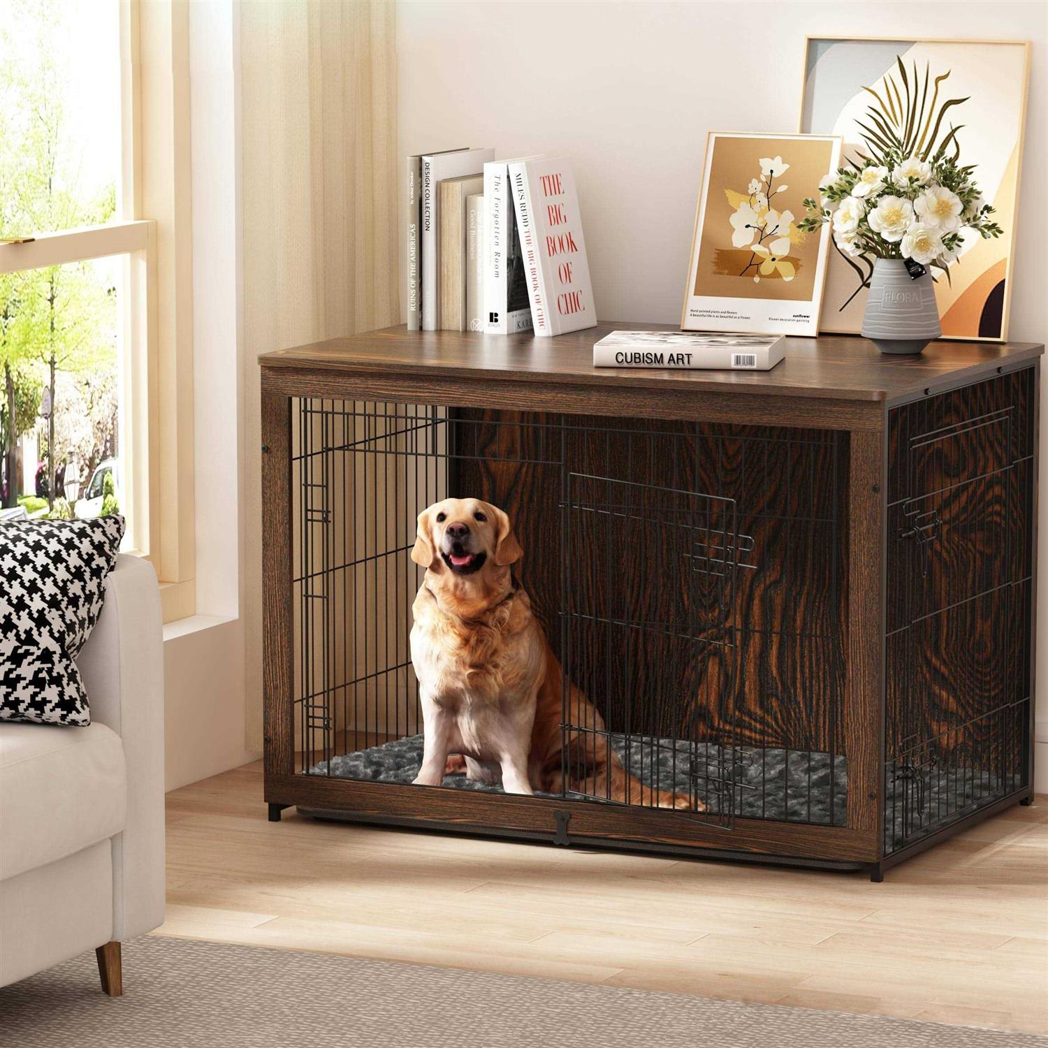 Megidok Wooden Dog Crate Furniture with Cushion Dog Crate End Table with Tray - Pet Supplies online store