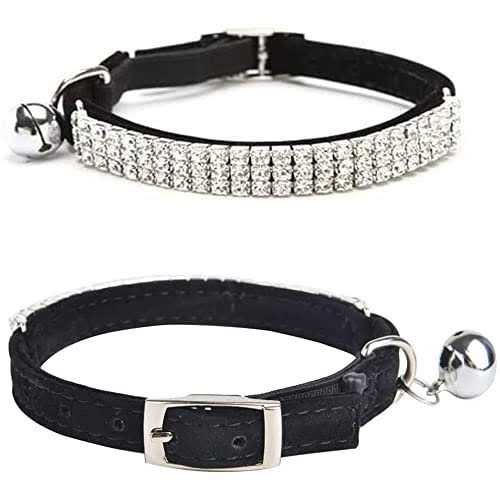 CHUKCHI Soft Velvet Safe Cat Adjustable Collar Bling Diamante With Bells,11 inch for Small Dogs and Cats - Pet Supplies online store