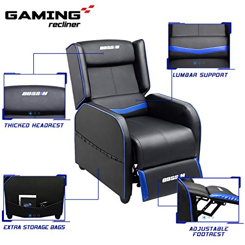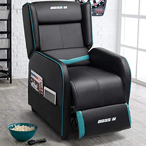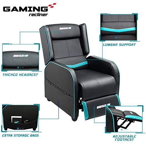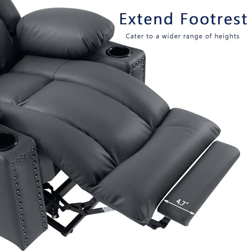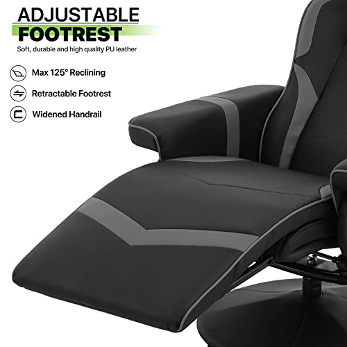LEMBERI Gaming Recliner Chair for Adults, PU Leather Home Theater Seating Video Game Chairs for Living Room Ergonomic Racing Style Single Movie Gamer Lounge Sofa Grey