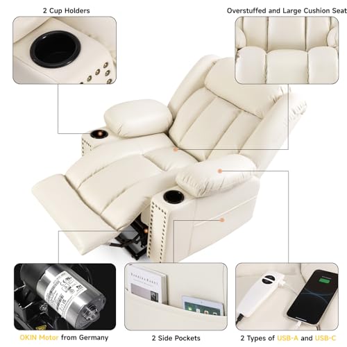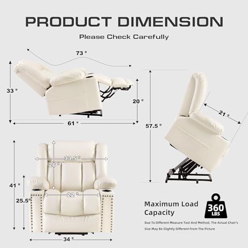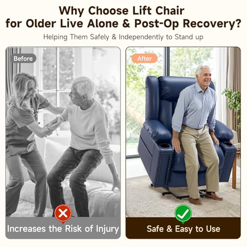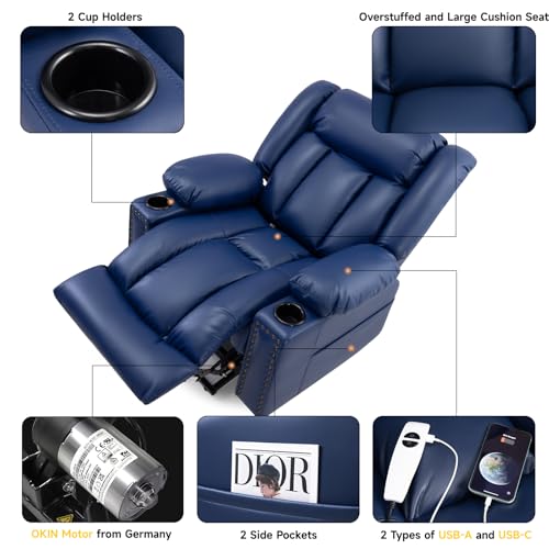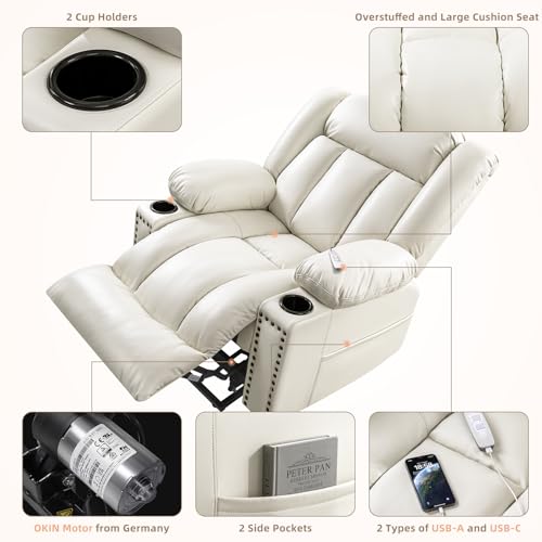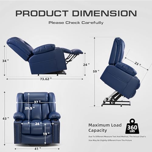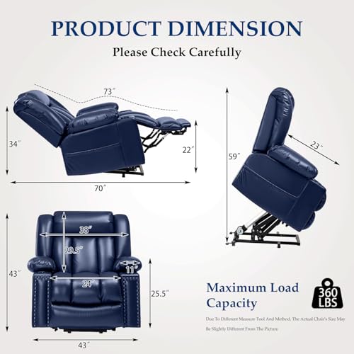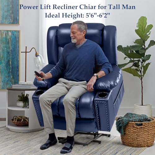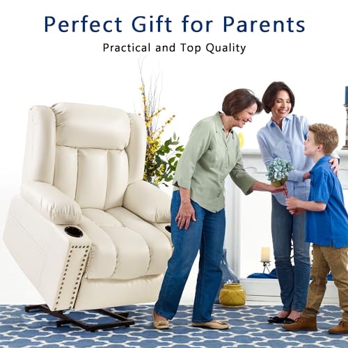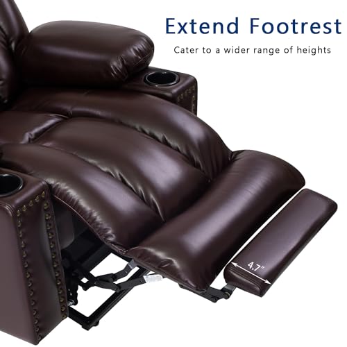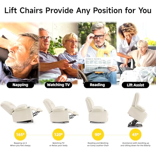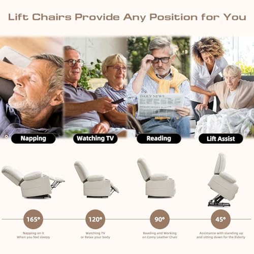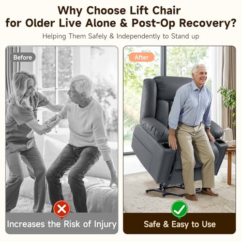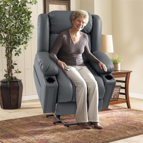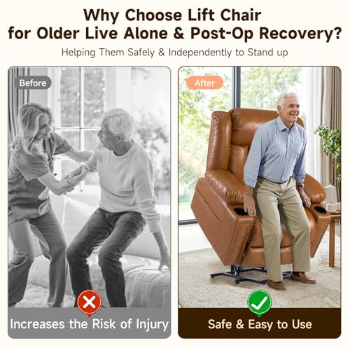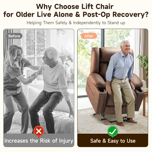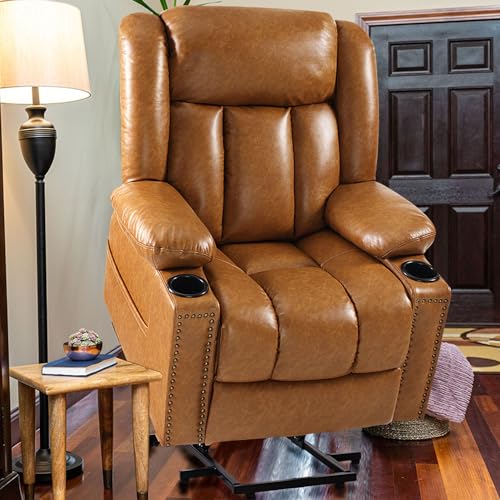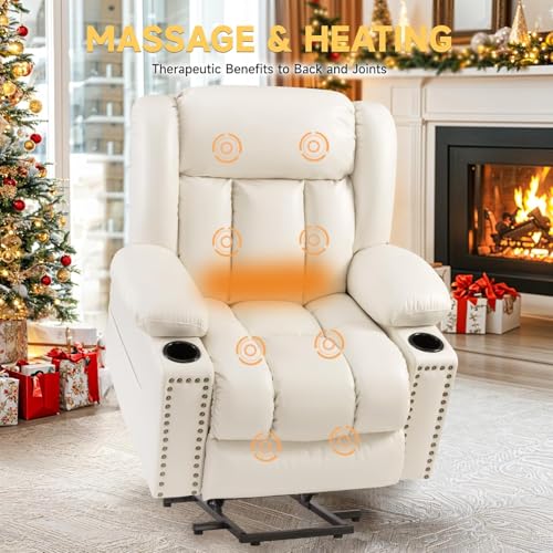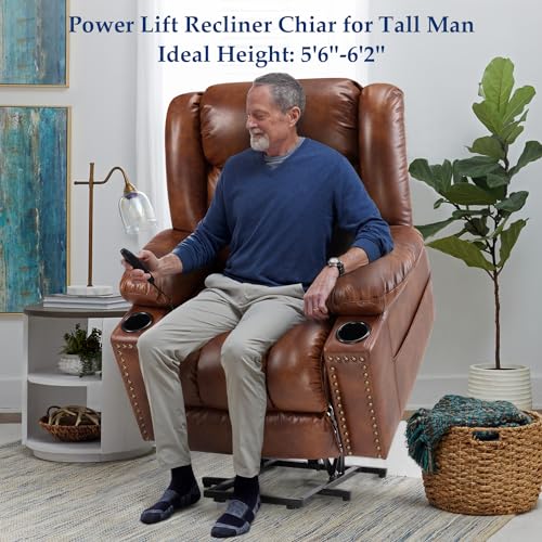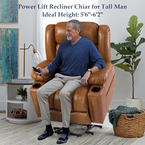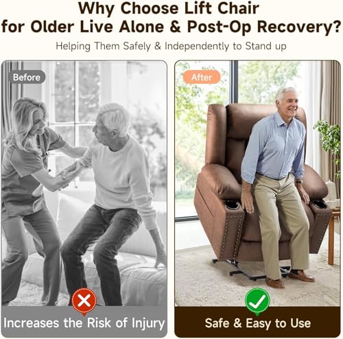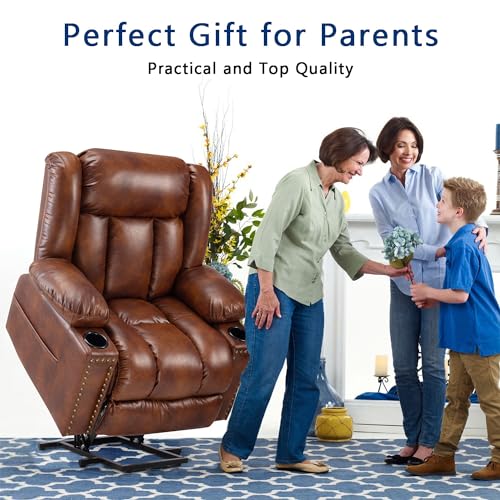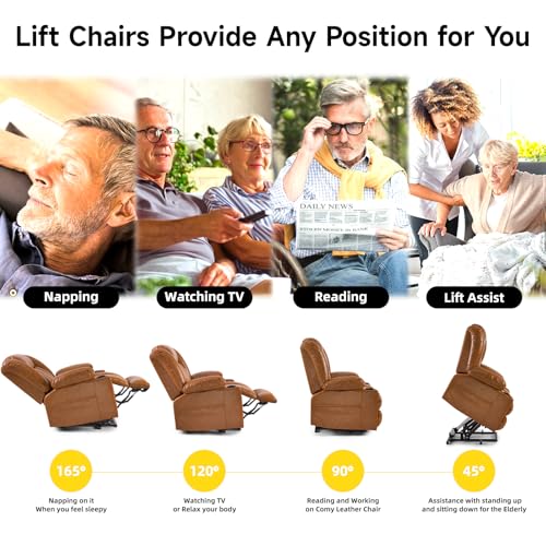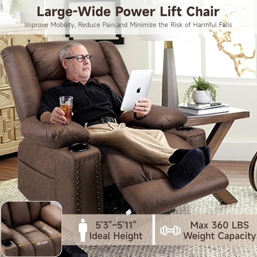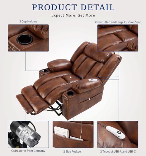 Large Power Lift Chairs Recliners for Elderly with Heated and Massage, Overstuffed Adjustable Lift Chairs, 3 Positions, Breathable Leather, USB-A and USB-C, Cup Holder, Side Pocket Dark Brown