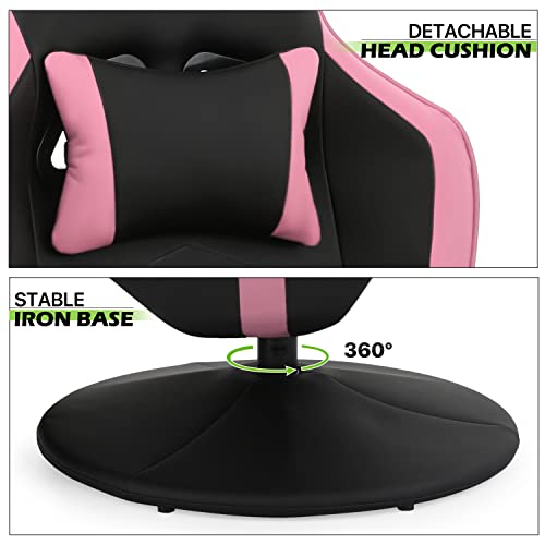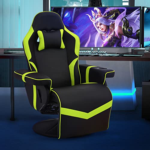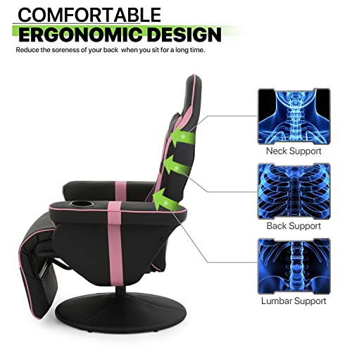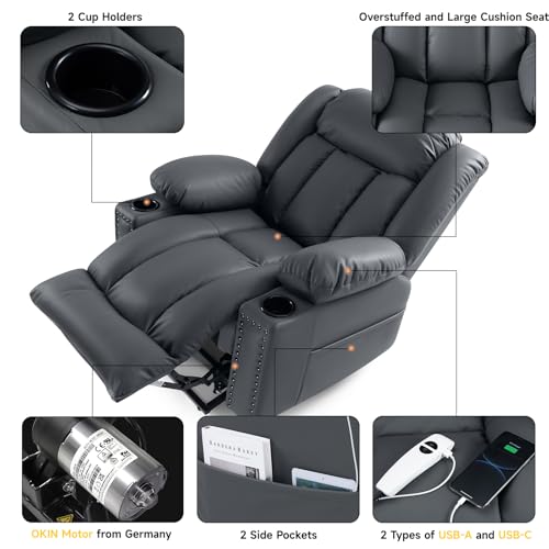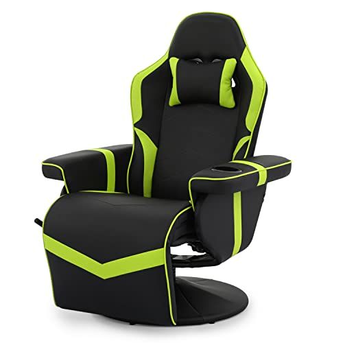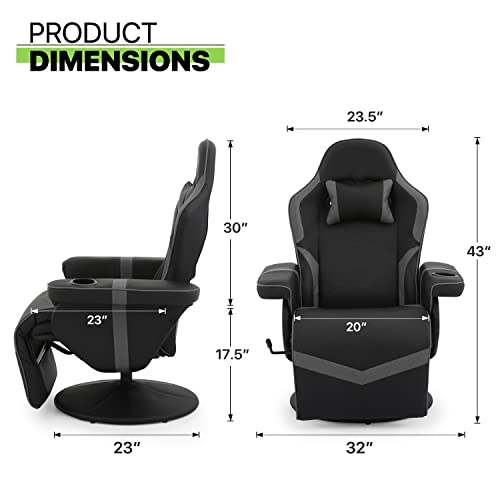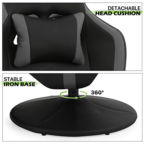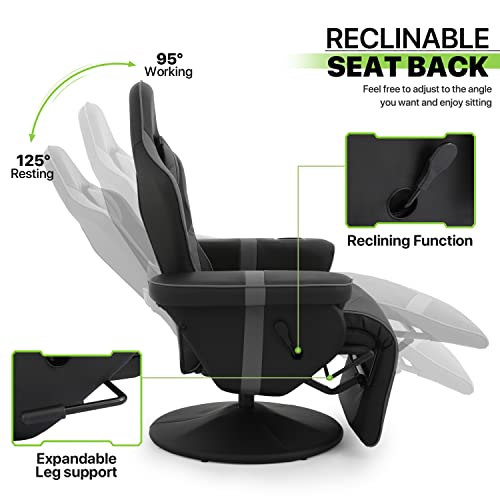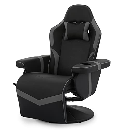 Magshion 360° Swivel Gaming Recliner Chair, Ergonomic PU Leather Reclining Chair with Adjustable Backrest, Footrest, Cup Holder & Neck Support, Heavy-Duty 300 lb Capacity for Adults, Teens, Grey