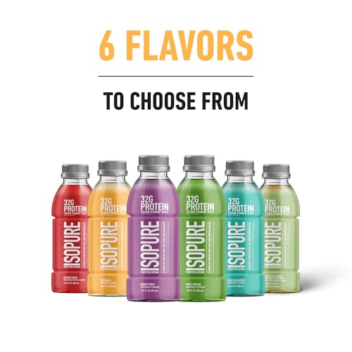 Isopure Zero Carb 32g Clear Protein Ready-to-Drink, Whey Protein Isolate, Blue Raspberry, 12 Pack (Packaging May Vary)