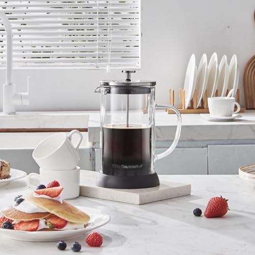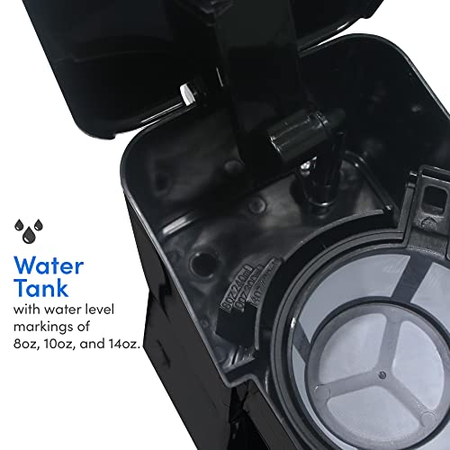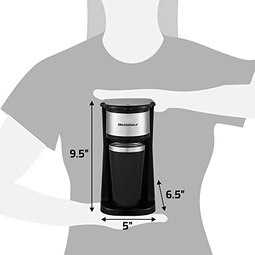 Elite Gourmet EHC113 Personal Single-Serve Compact Coffee Maker Brewer Includes 14Oz. Stainless Steel Interior Thermal Travel Mug, Compatible with Coffee Grounds, Reusable Filter, Black