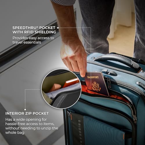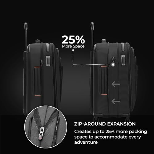 Briggs & Riley Domestic 22" Carry On Expandable Spinner - Luggage for Travel, Suitcases with Wheels, Softside Rolling Bag for Men & Women, Self-Repairing Zipper - ZDX Collection, Black