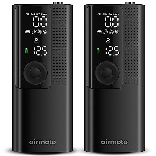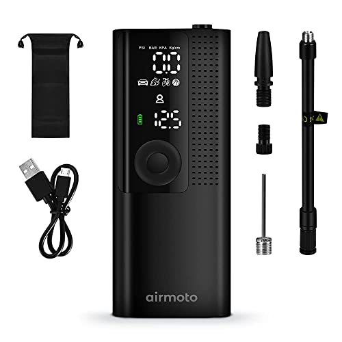 Airmoto Tire Inflator Portable Air Compressor - Air Pump For Car Tires with Digital Pressure Gauge, LED Light and Auto Shut-Off Function - Cordless Pump for Car, Motorcycle, Bicycle, Balls and More