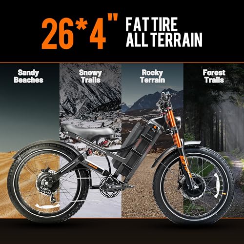 2025 Romeo Pro 3/Pro 2 Electric Bike for Adults 5000W/4000W Dual Motor E Bike 50/46MPH 60V/80Ah 52V/70AH Long Range Electric Bicycle,26 * 4.0 Fat Tire Full Suspension Electric Mountain Bike