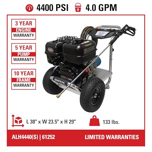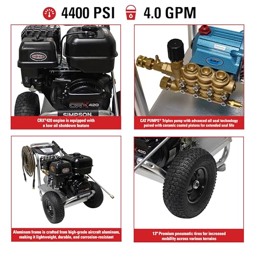 Simpson Cleaning 4200 PSI Gas Pressure Washer, 4.0 GPM Power Washer for Commercial Use, Honda GX390 Engine, 50-Foot Steel-Braided Hose, Aluminum Series, 49-State (ALH4240)