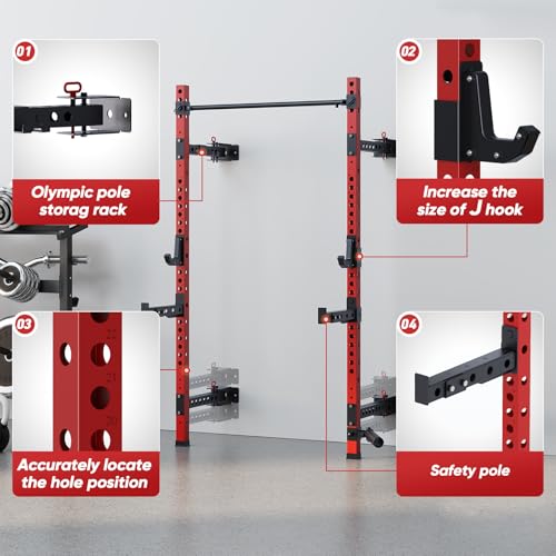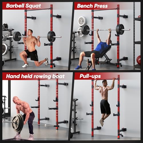 QSNSILK 2.36" x 2.36" Folding Squat Rack, Wall-Mounted Power Cage with Pull-up Bar, J-Hooks, Landmine, Spotter Arms, 1000LBS Capacity, Space-Saving Home Gym