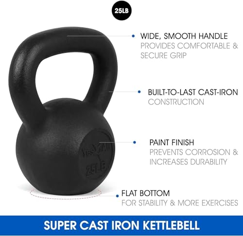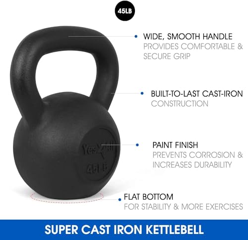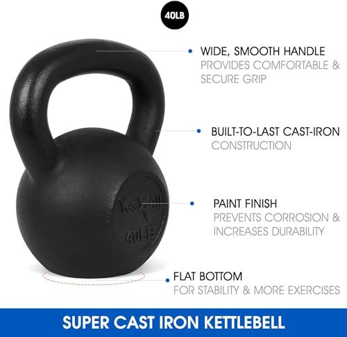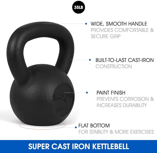 Yes4All 5-80 lbs Cast Iron Kettlebell for Dumbbell Weights Exercises, Gym, Full Body Home Workout Equipment, Push up, Grip and Strength Training