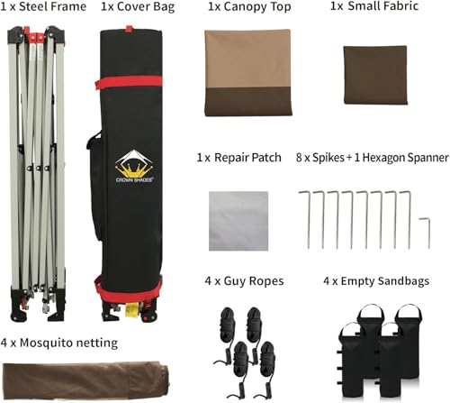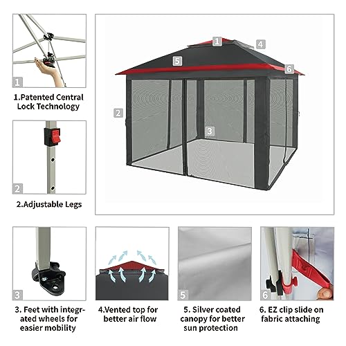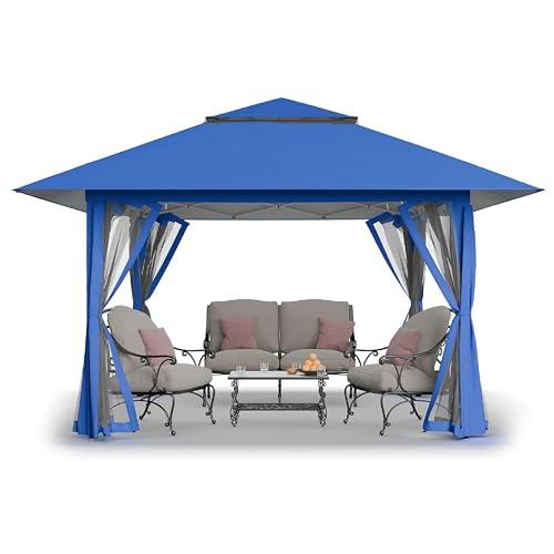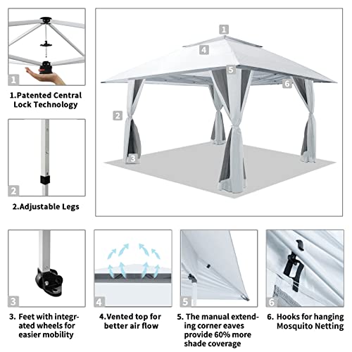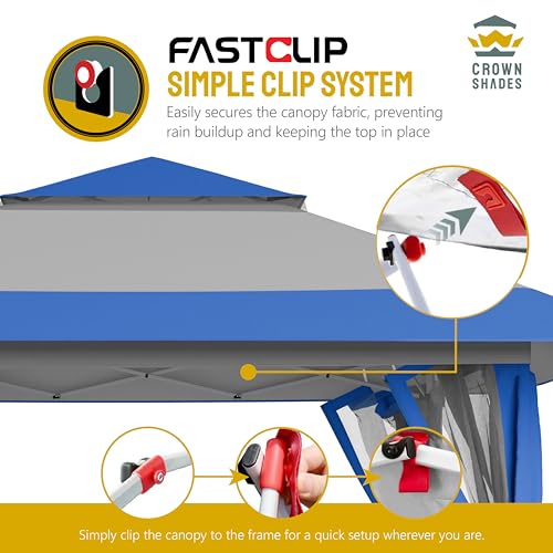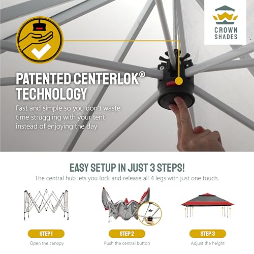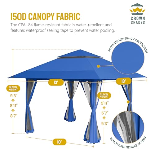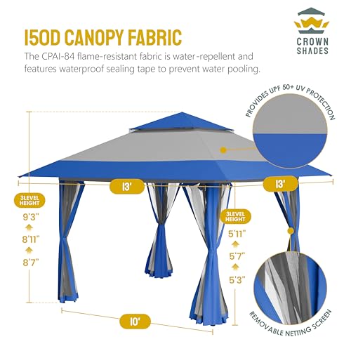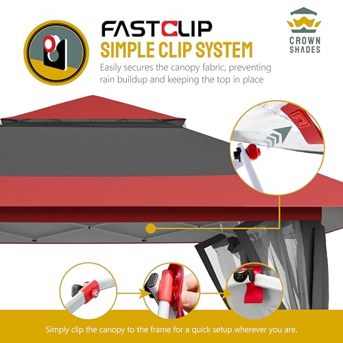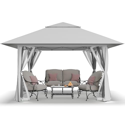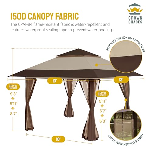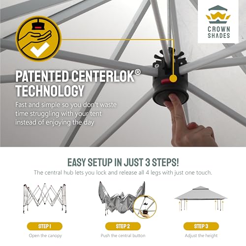 CROWN SHADES 13x13 Pop Up Gazebo, Canopy Tent, Gazebos on Clearance - Outdoor Gazebo for Backyard & Patio Furniture - Carpa Pop Up Tent with Wheeled STO-N-Go Cover Bag (Grey)