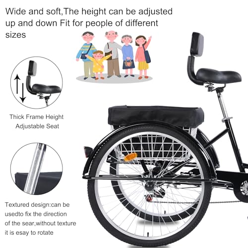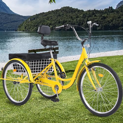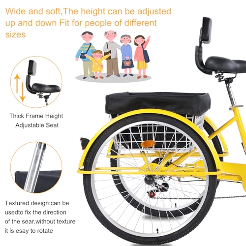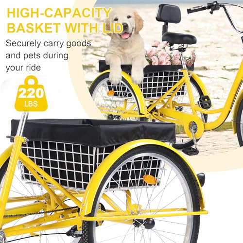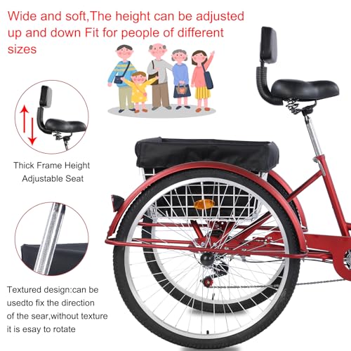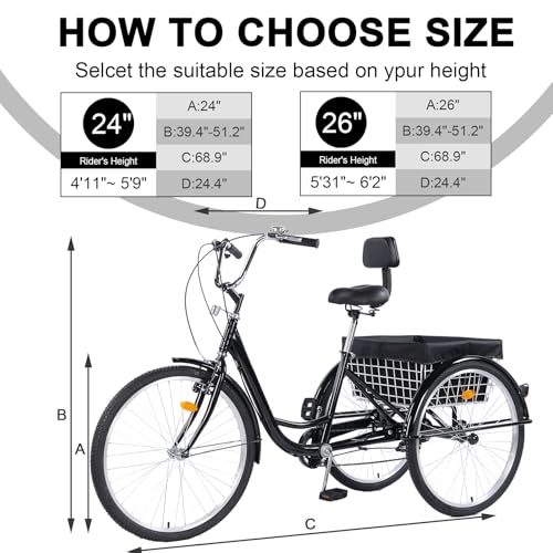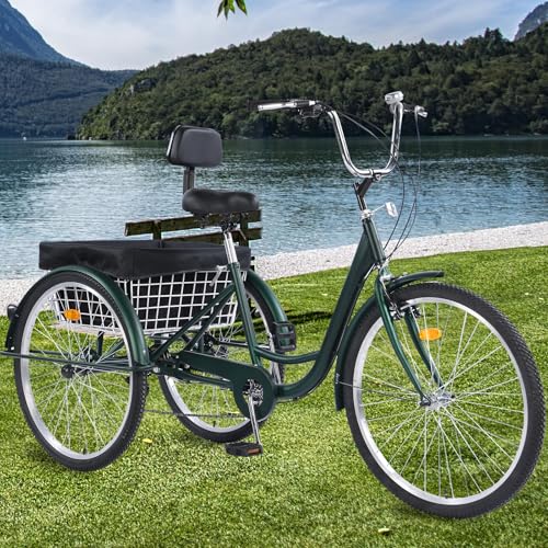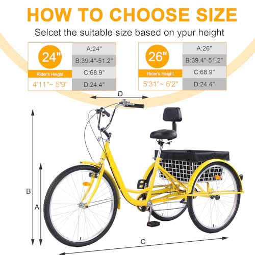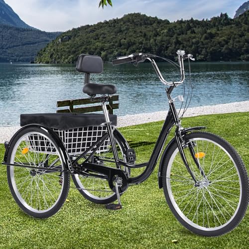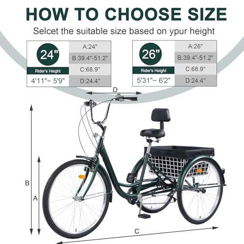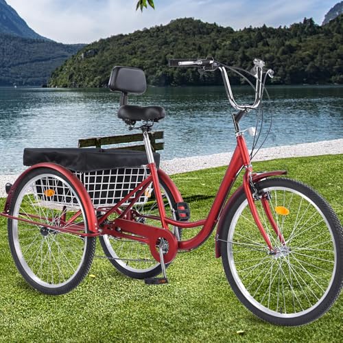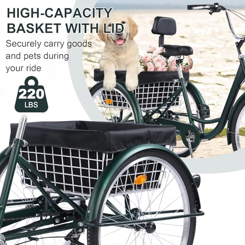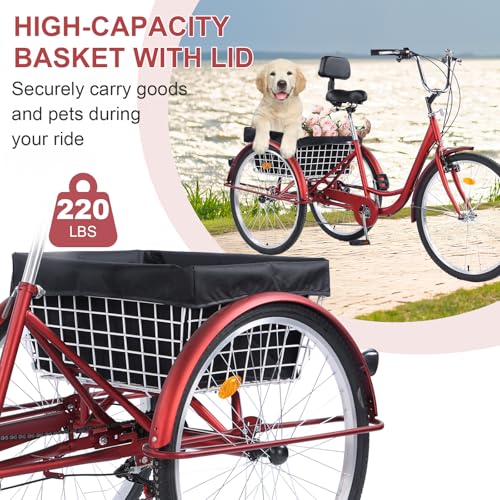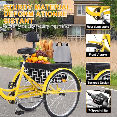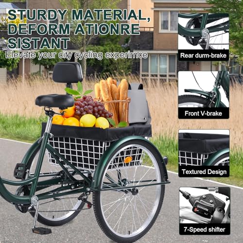 Versatile 24/26-Inch 3-Wheel Adult Tricycle with 7-Speed Gearing and Spacious Basket for Comfortable Riding and Storage for Recreation, Shopping, Picnics