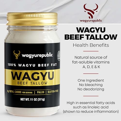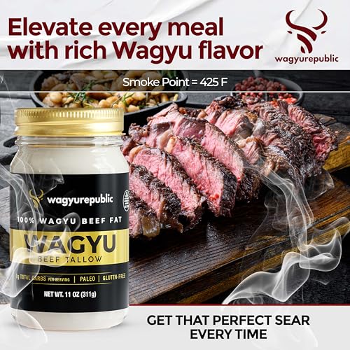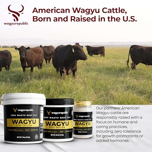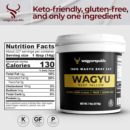 Wagyu Republic Beef Tallow ⎸ Grass Fed Wagyu Beef Tallow, Great for Cooking Steak or as Tallow Balm ⎸ Keto, Gluten Free Protein Snacks for Adults, Perfect for Whole 30 or Carnivore Diet ⎸7lbs