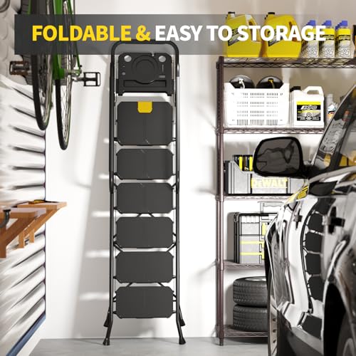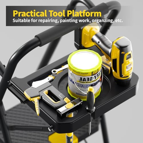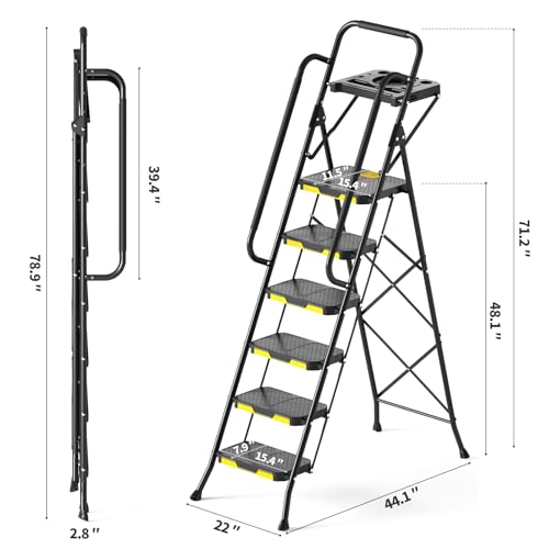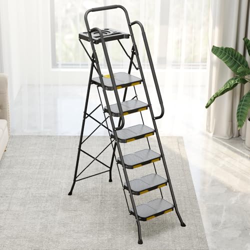 KINGRACK 6 Step Ladder with Tool Platform, Folding Step Stool with Handrails, Sturdy Steel Ladder with Wide Pedal, 800 LBS Portable Safety Ladder for Painting Home Outdoor Garage