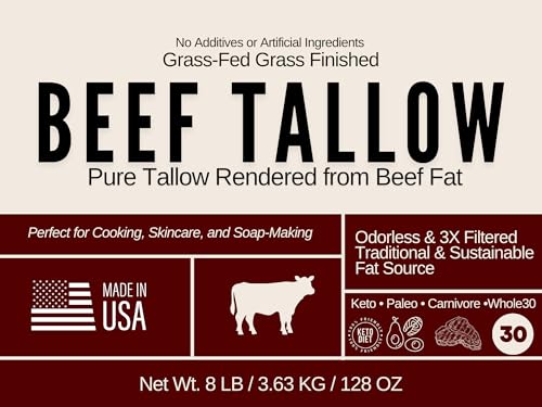 100% Pure Rendered NON GMO Beef Tallow-Food Grade- 7LBS