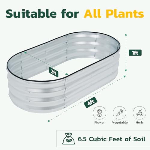 LINEX Galvanized Raised Garden Bed 4x2x1 ft, Metal Raised Garden Beds Outdoor Planter Boxes Clearance for Gardening Vegetables Flowers Herbs Above Ground