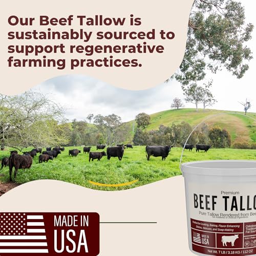 Beef Tallow for Cooking 7 LB Bulk Pail w/Safety Seal - Also For Skin or Face to create Soap, Cream, Balms, or Mositurizer