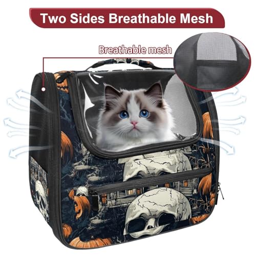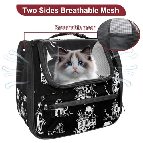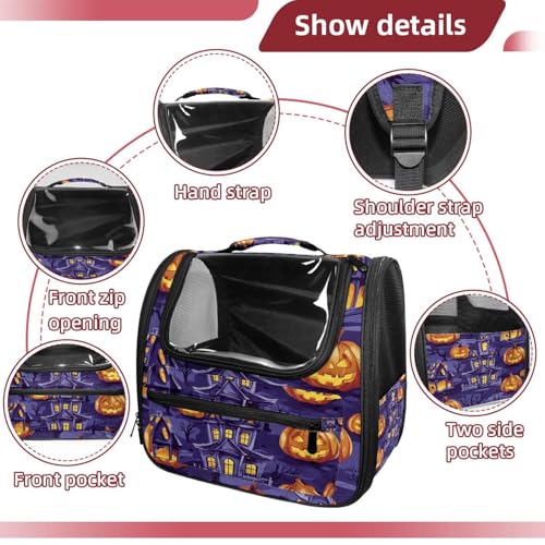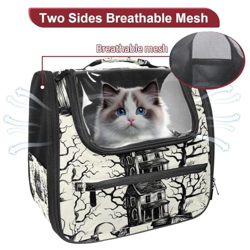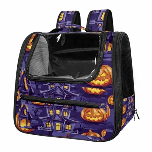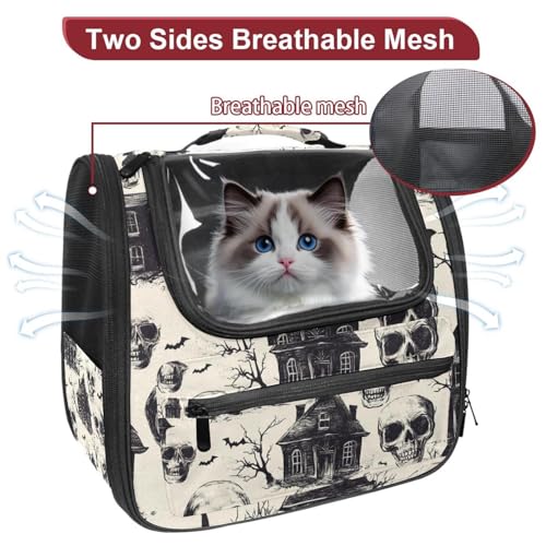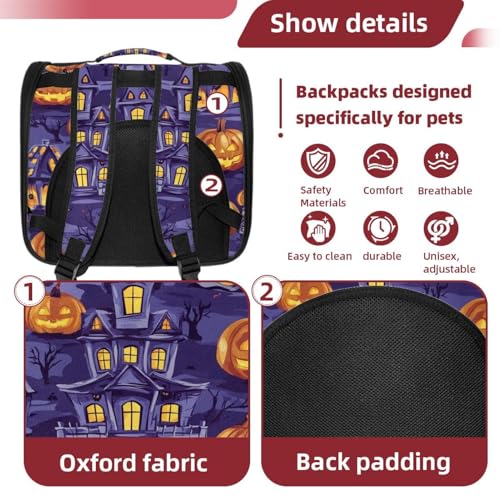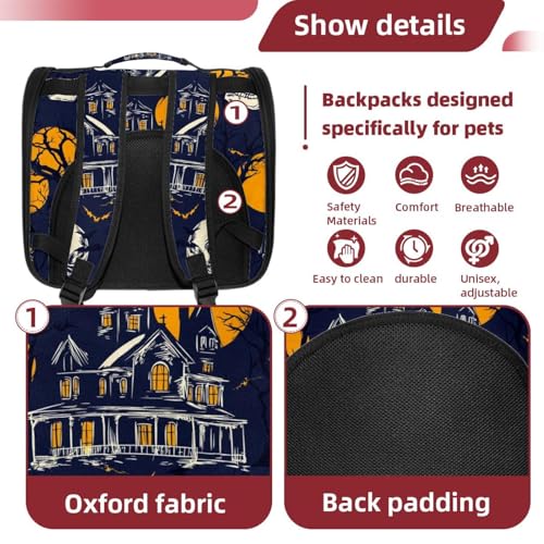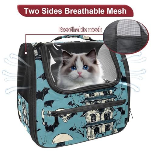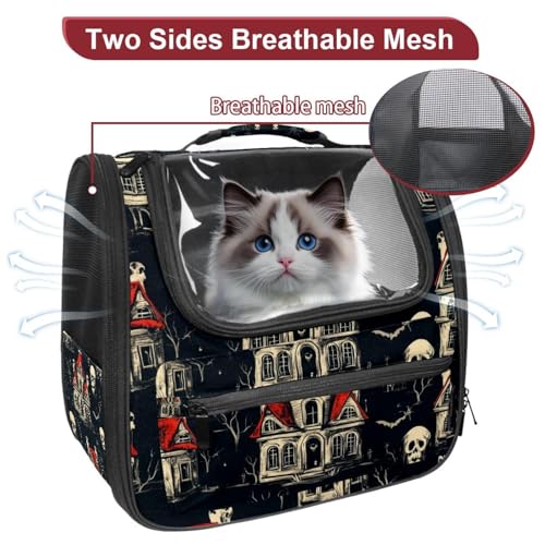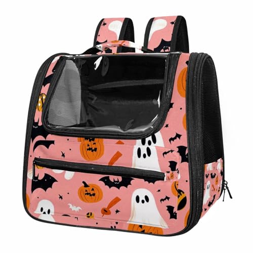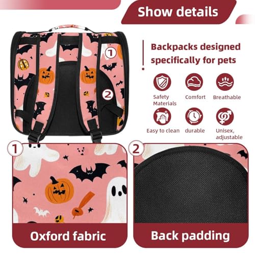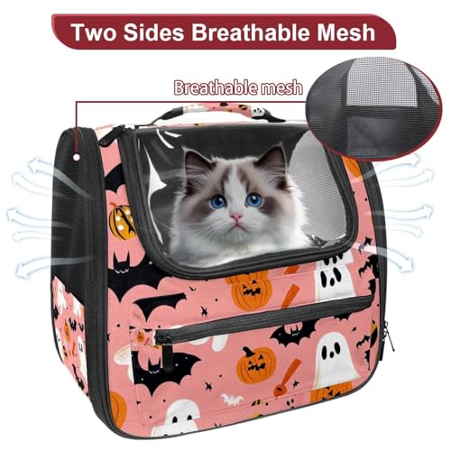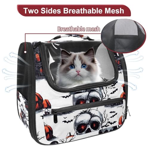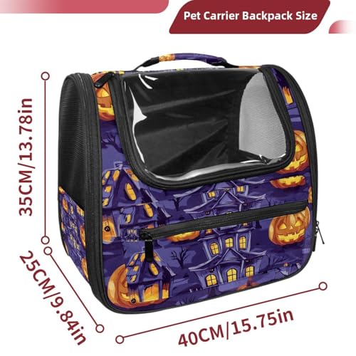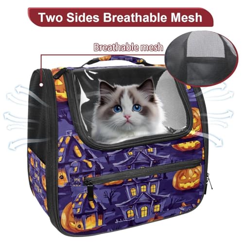 Halloween Bats Candies Pumpkins Cat Backpack Carrier, Breathable Cat Carrier Large Space Bubble Pet Backpack for Kitty Small Dog