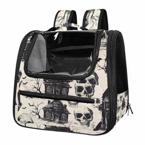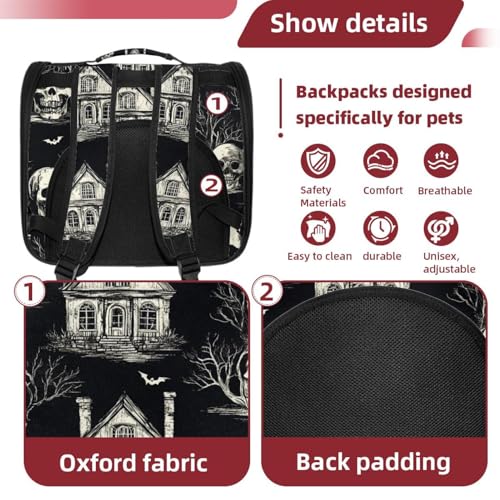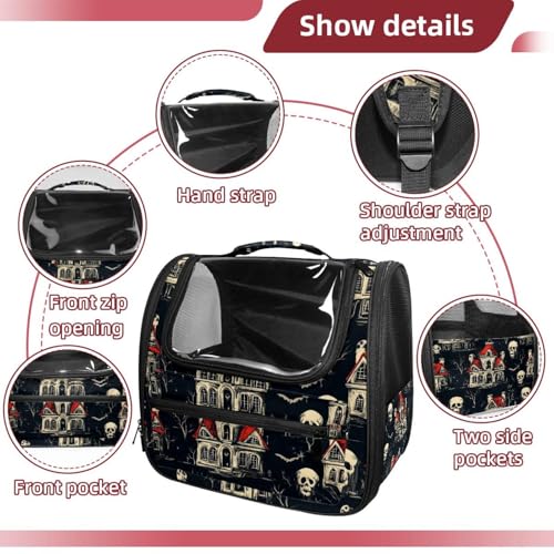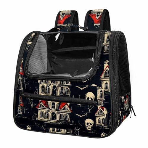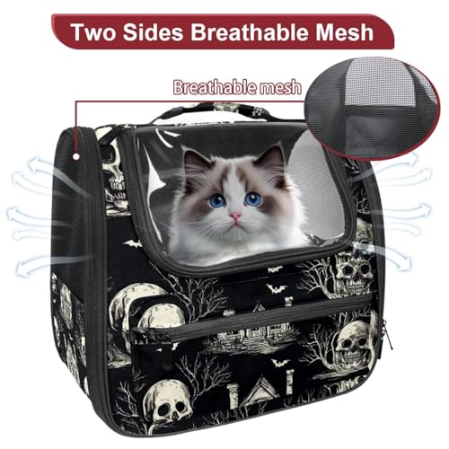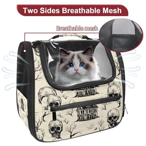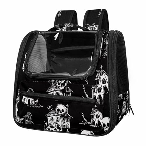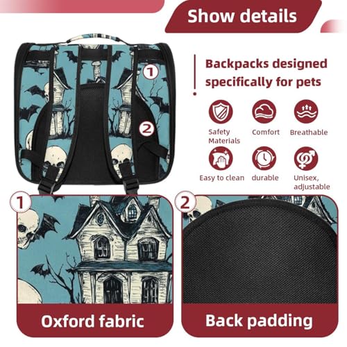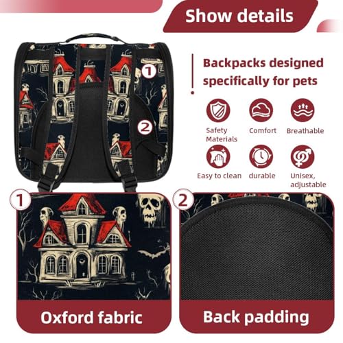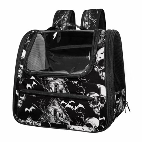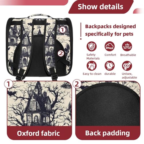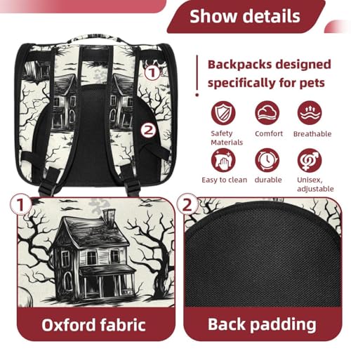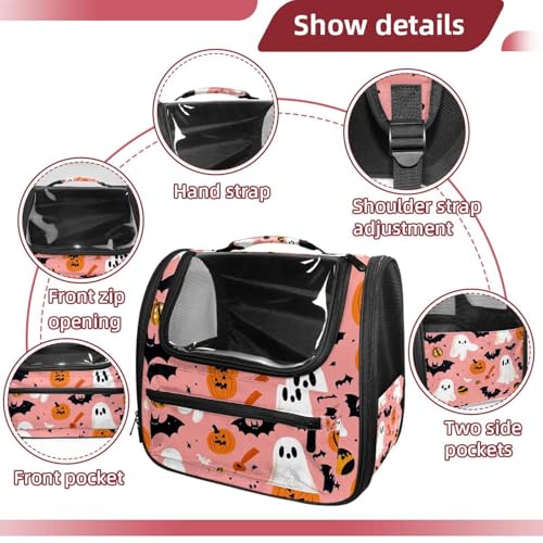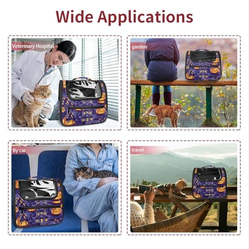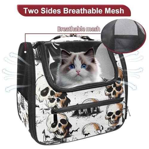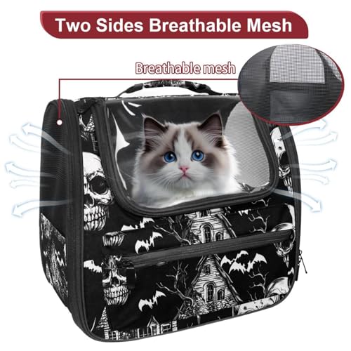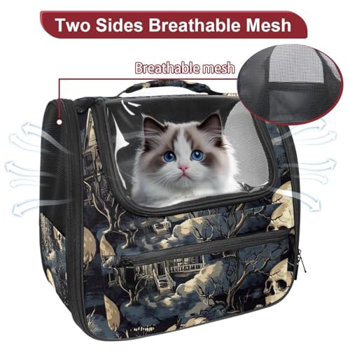 Halloween Bats Candies Pumpkins Cat Backpack Carrier, Breathable Cat Carrier Large Space Bubble Pet Backpack for Kitty Small Dog