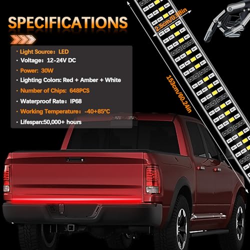 60 Inch LED Tailgate Light Bar with Reverse & Sequential Turn Signals for Truck