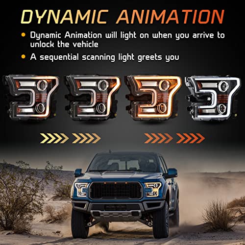KEWISAUTO Full LED Headlights for F150 2015 2016 2017, DOT Approved LED Projector Head Lamps with Switchback DRL Dynamic Animation Sequential Turn Signal for Ford F-150 2015-2017 - 2PCS