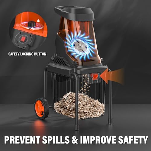 MAXLANDER 15-Amp Electric Wood Chipper, Shredder Mulcher with 50L Collecting Bin, 1.8-Inch Cutting Diameter for Mulching, Composting and Yard Cleanup 15:1 Reduction