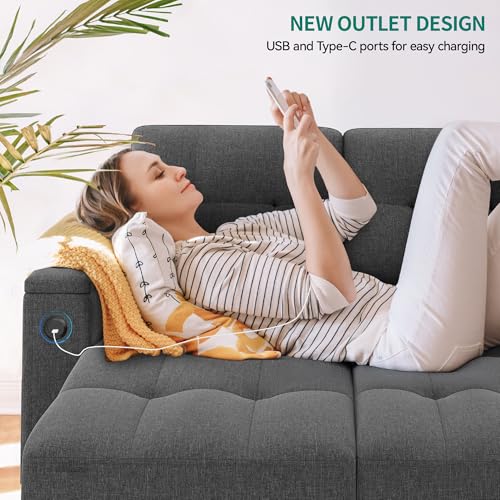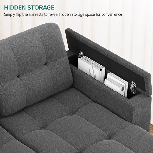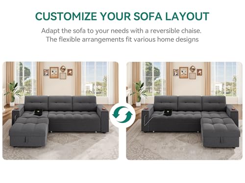 YITAHOME Sectional Sofa L-Shaped Sofa Bed w/Chaise & USB, Reversible Couch Sleeper w/Pull Out Bed & Storage Space, 4-seat Pull Out Couch for Living Room Dark Gray