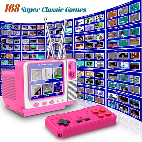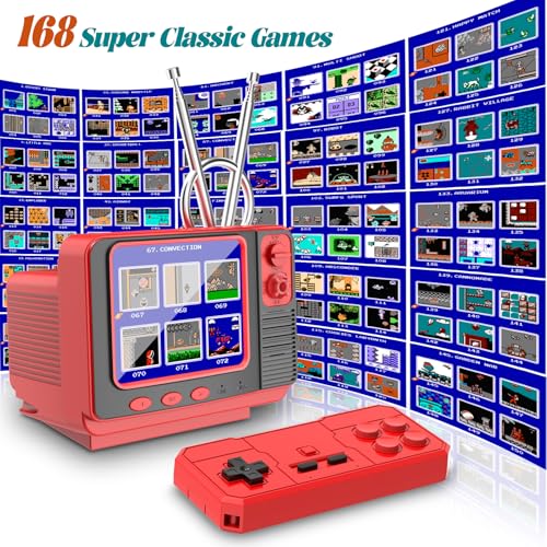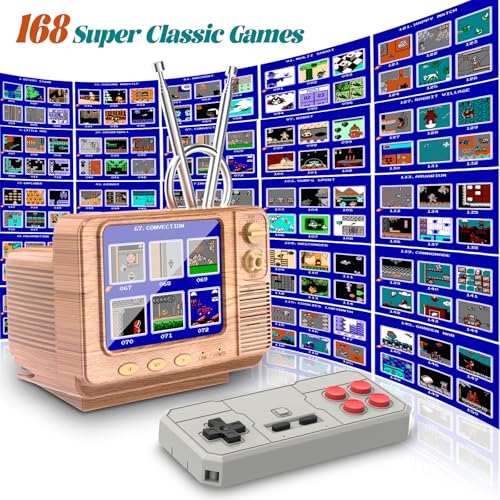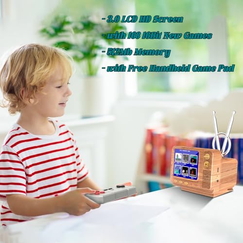 EASEGMER Handheld Games - GV300S 168 Classic Retro Video Game with 3.0 Inch Screen Electronic Mini TV Style Support Connecting TV and Two Players (Wood)