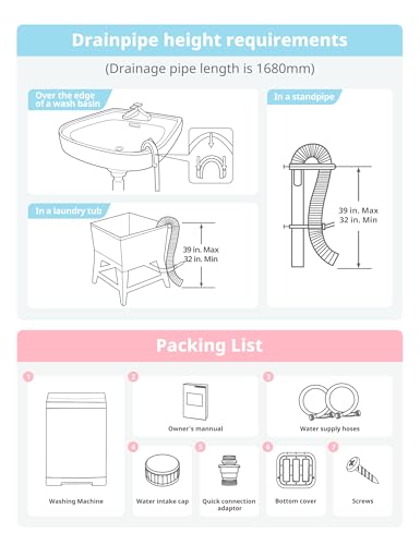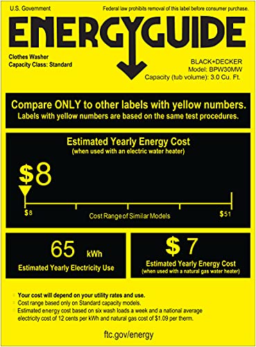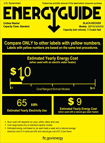 BLACK+DECKER 0.9 Cu. Ft. Portable Washer, 6.6 lb. Capacity Washing Machine for Homes & Apartments, 5 Wash Cycles, Quick Connect Sink Adapter and Drain Hose Included, Transparent Lid & LED Display, BPWM09W, White