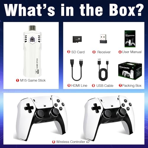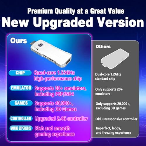 Upgrade Retro Game Stick Pro, Wireless Retro Gaming Console with 40000+ Games, Built-in 38 Game Emulators, Plug and Play Video Games for TV, 4K, Retro Game Console with Dual 2.4G Controllers (64G)