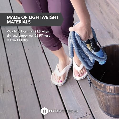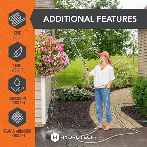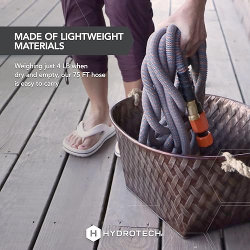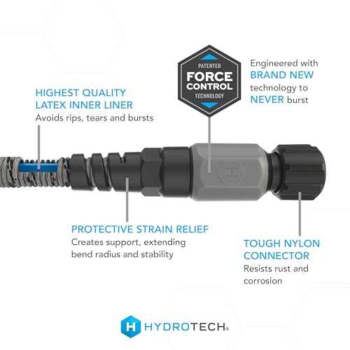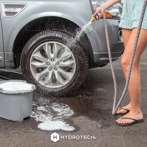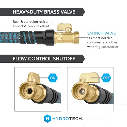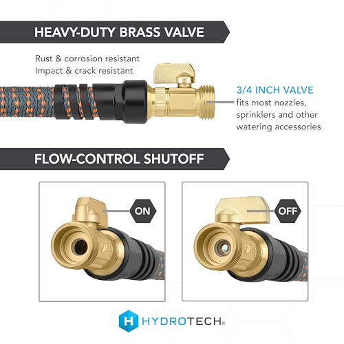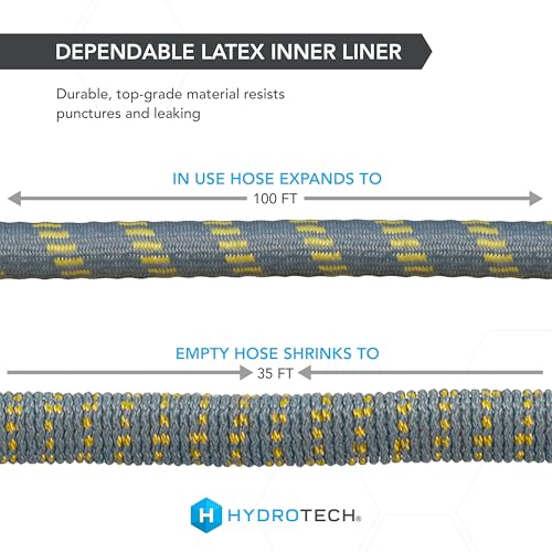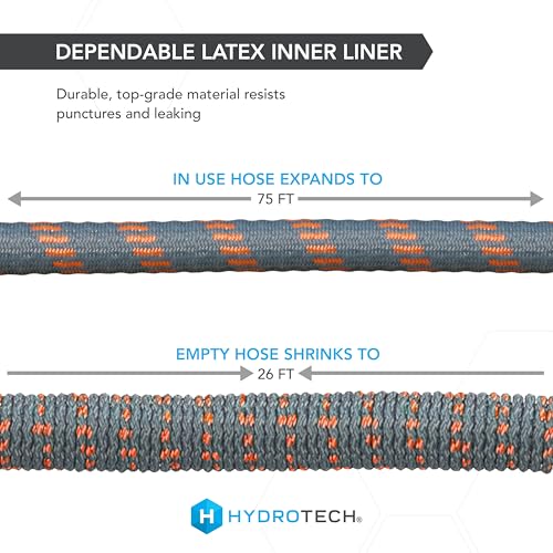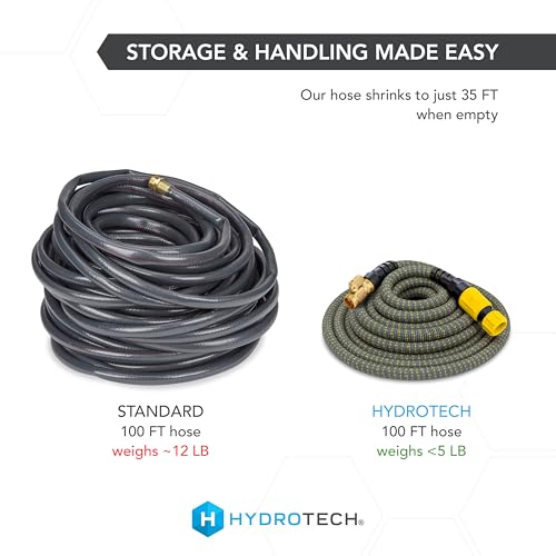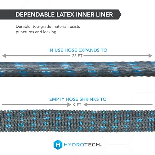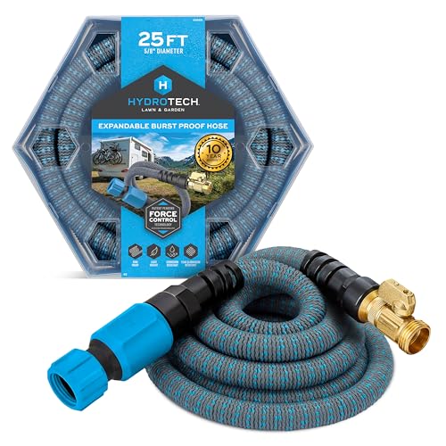 HydroTech 5/8" 25 ft Expandable Garden Hose - Flexible, Lightweight, Durable and Burst-Proof Hose with Reinforced Latex Core and Solid Brass Fittings - Great for Lawn Care, Garden, and Car Washing