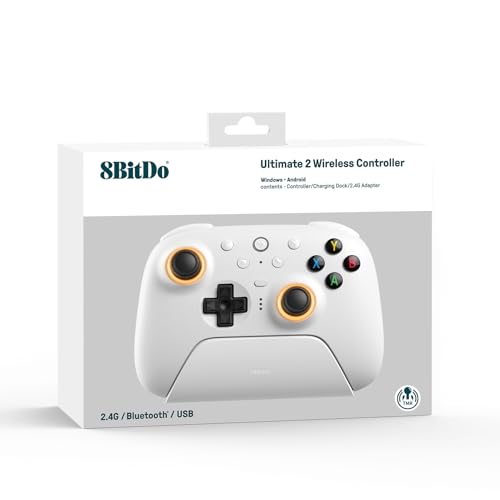 8BitDo Ultimate 2 Wireless Controller for Windows & Android, Gaming Controller with TMR Joysticks, Switchable Hall Effect/Tactile Triggers, RGB Fire Ring, 8Speed Wireless Tech, Black
