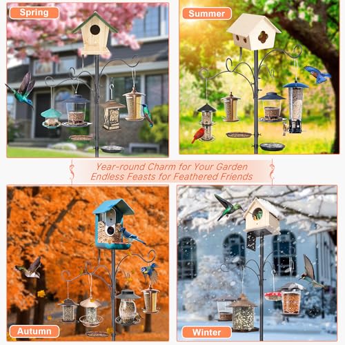 eWonLife 92 Inch Bird Feeder Pole with Squirrel Baffle & Upgraded 9-Prong Base, Adjustable Bird House Pole for Outdoors Heavy Duty, Birdhouse Stand Post Station with 4 Shepherd Hooks, Birdbath, Tray