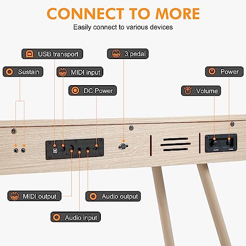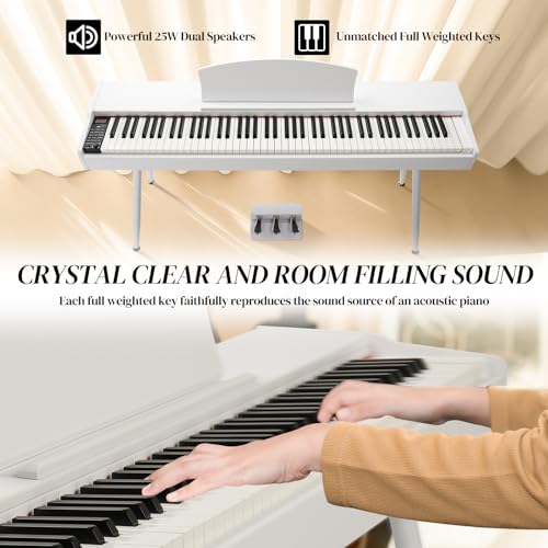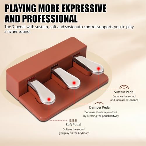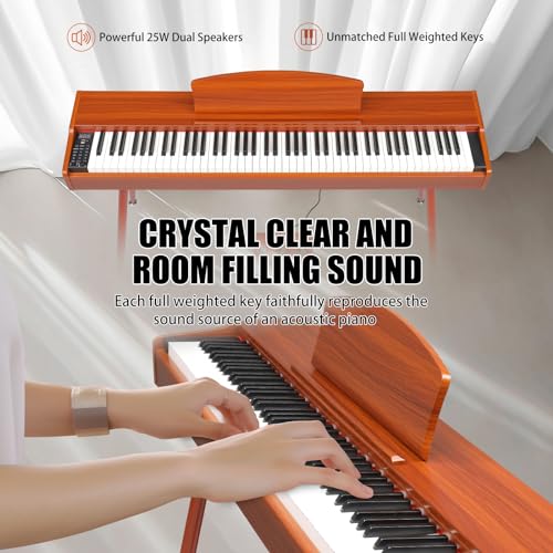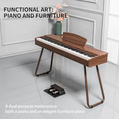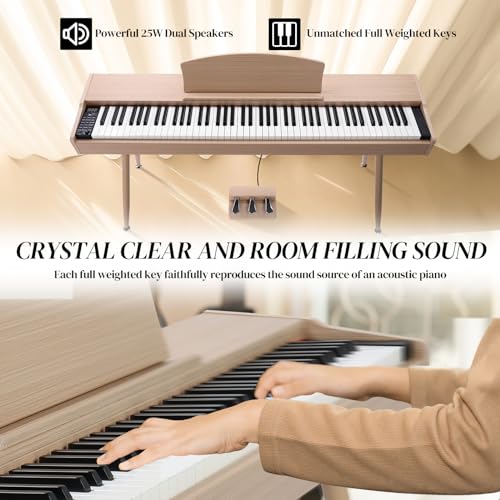 88 Key Weighted Keyboard Piano - Beginner Digital Piano Full Size Multi-Functional Wooden Electric Keyboard with Portable Stand | Power Adapter | Triple Pedal | MIDI Connecting