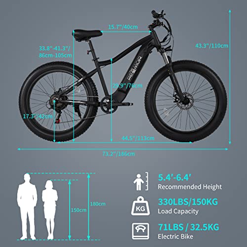 PEXMOR Electric Bike for Adults, 750W Ebike 32MPH 48V 14AH Removable Battery Electric Bicycle,26" Fat Tire Electric Mountain Bike Snow Beach Commuter E-Bike,7 Speed, UL Certified