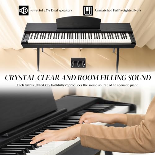 Ktaxon Digital Piano 88-Key Weighted Action Electric Piano with 3-Pedal Unit, Double Bluetooth, Split/Touch/Transpose Control Functions(Black)
