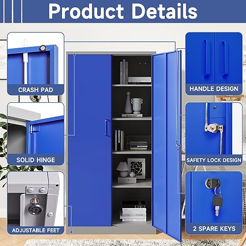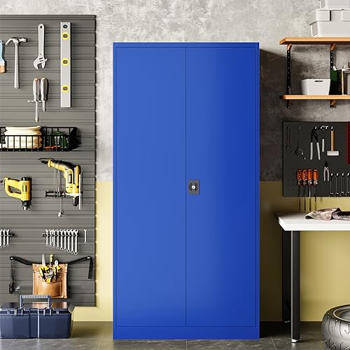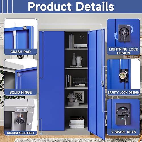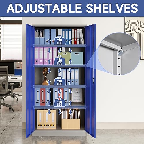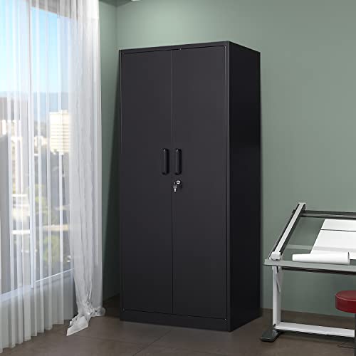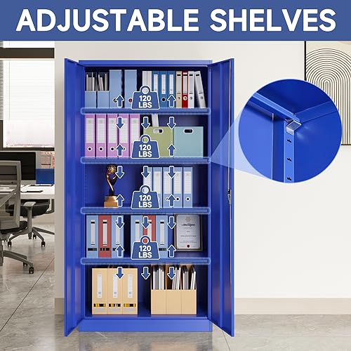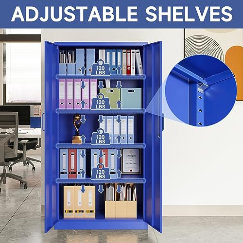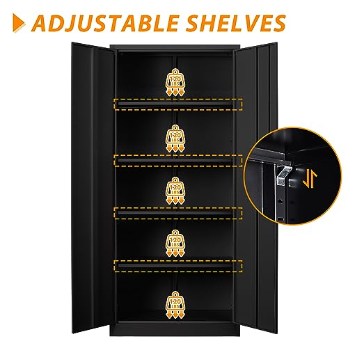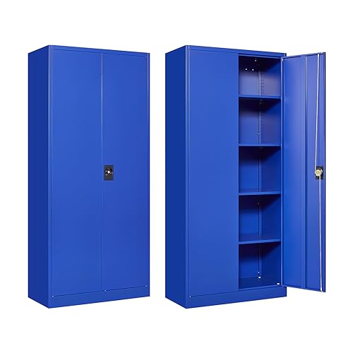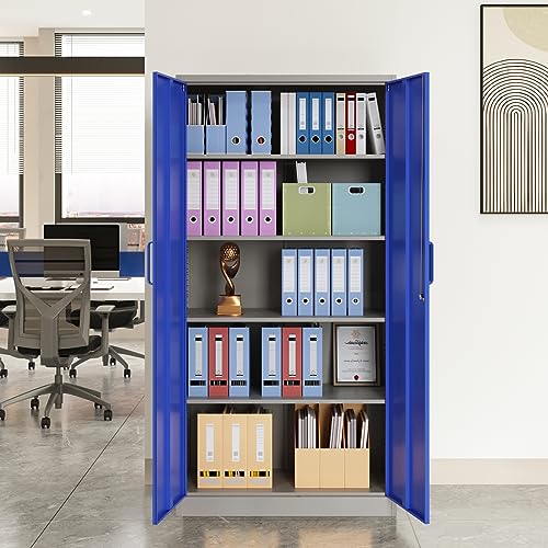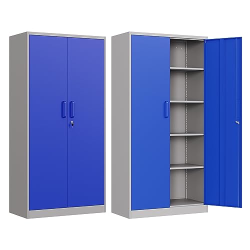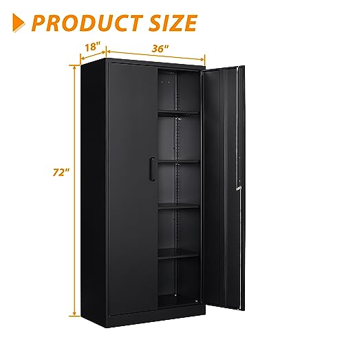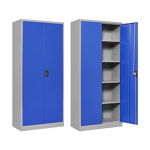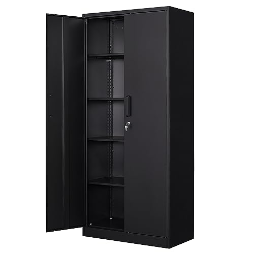 Metal Storage Cabinet, 72" Locking Metal Storage Cabinet, with 2 Doors and 4 Adjustable Shelves, for Storage Office, Garage, Home, Classroom, Shop, Pantry