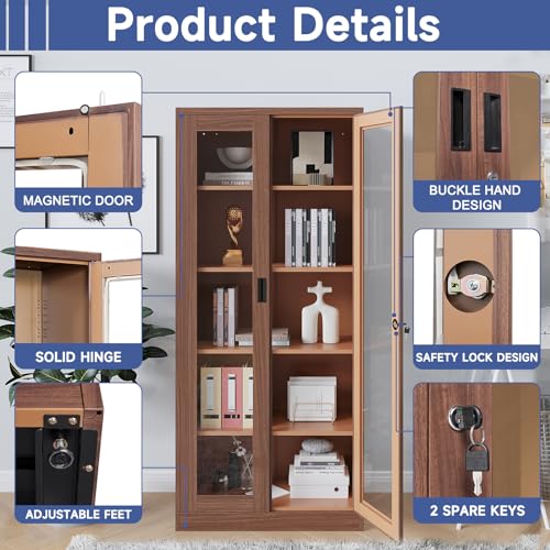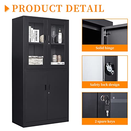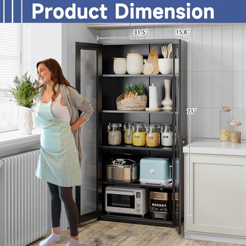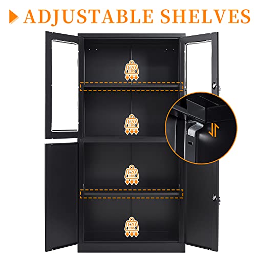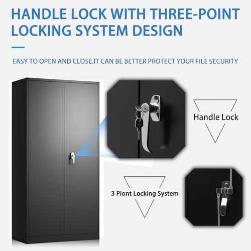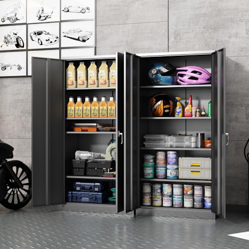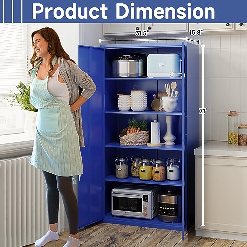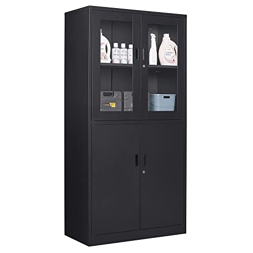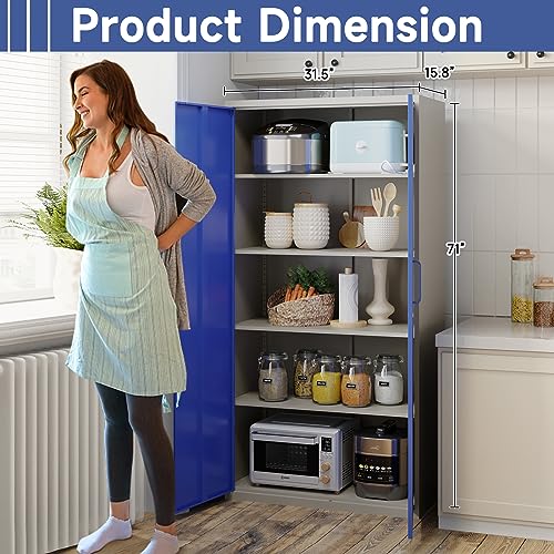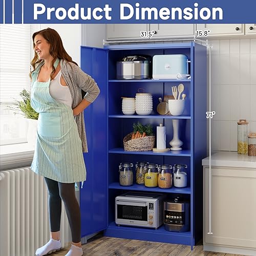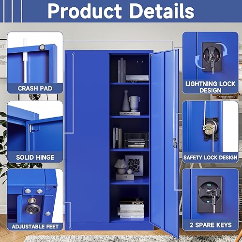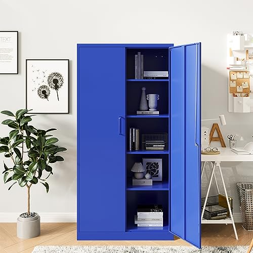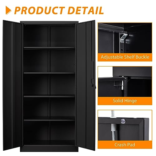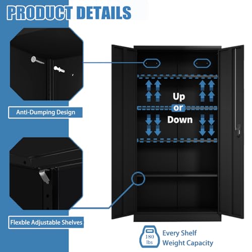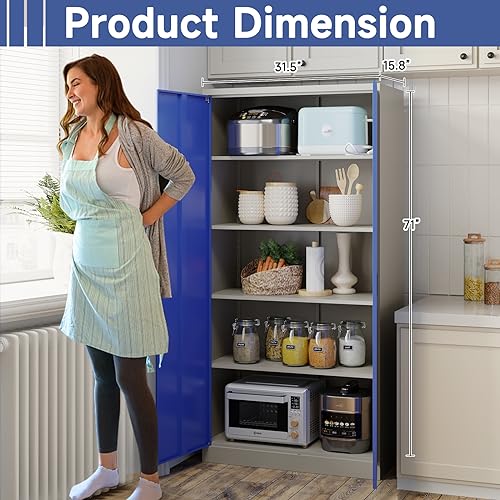 Metal Storage Cabinet, 72" Locking Metal Storage Cabinet, with 2 Doors and 4 Adjustable Shelves, for Storage Office, Garage, Home, Classroom, Shop, Pantry