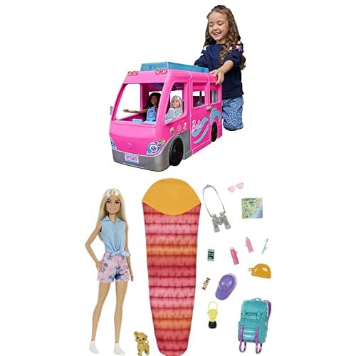 Barbie Camper Playset, DreamCamper Toy Vehicle with 60 Doll-Sized Accessories Including Furniture, Pool & 30-inch Slide