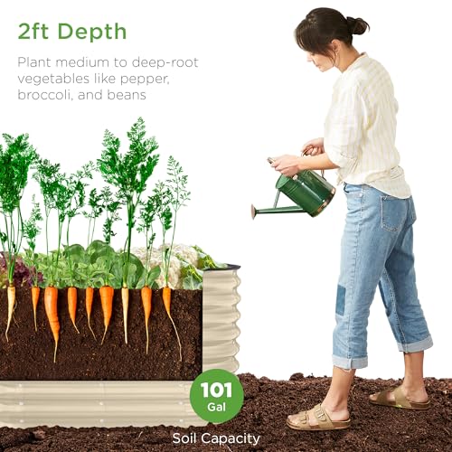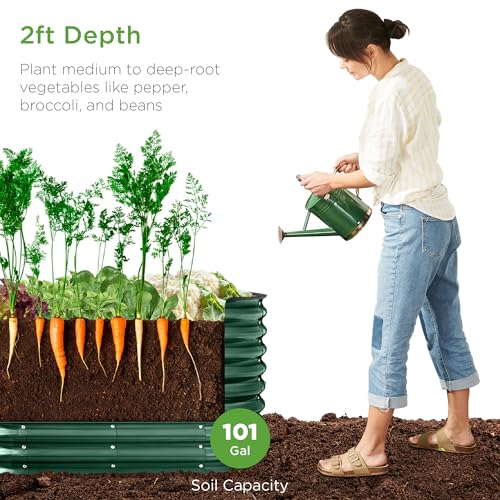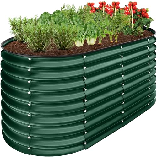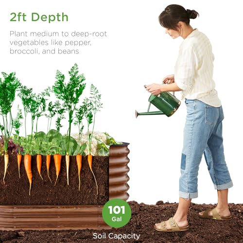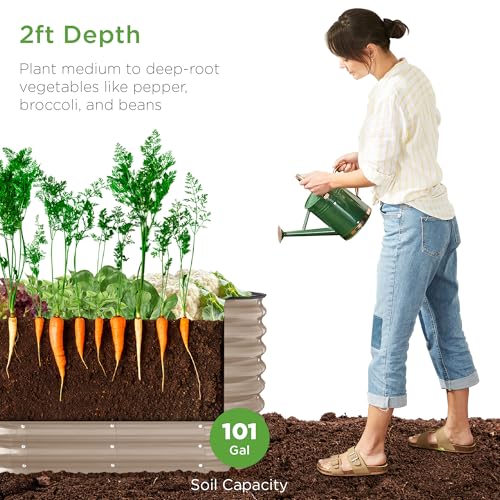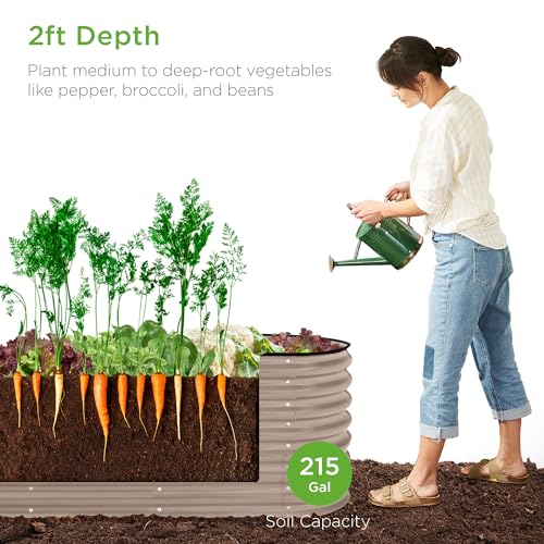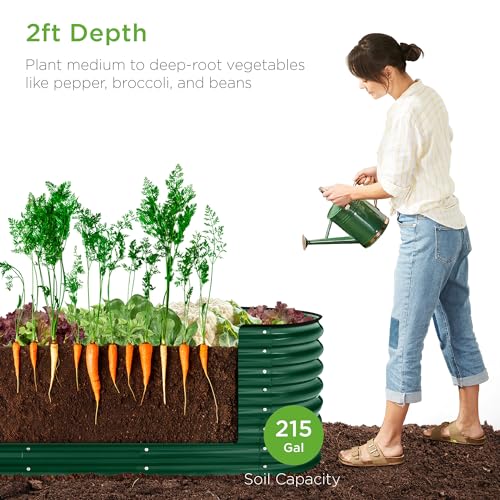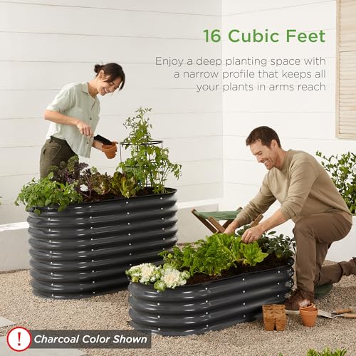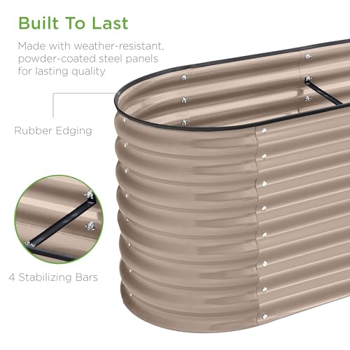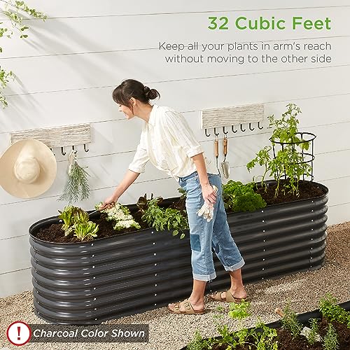 Best Choice Products 8x2x2ft Metal Raised Garden Bed, Oval Outdoor Deep Root Planter Box for Vegetables, Herbs w/ 4 Support Bars, 215 Gal Capacity - Charcoal