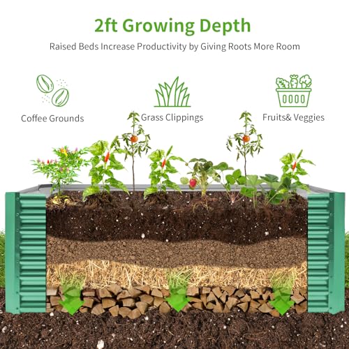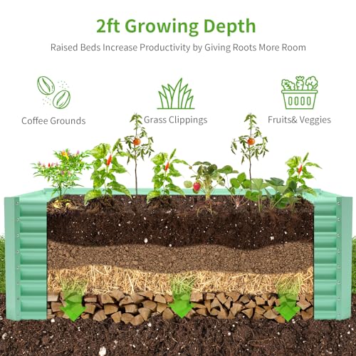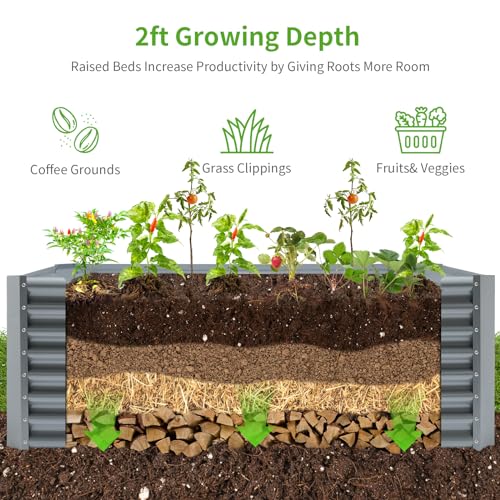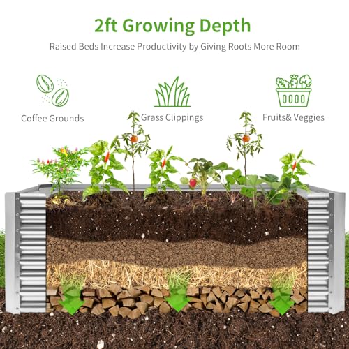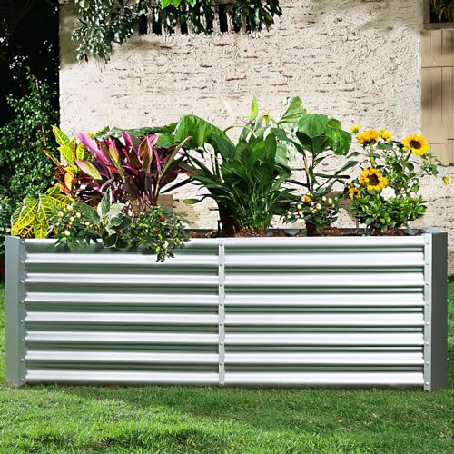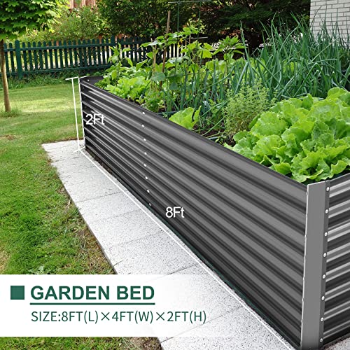 Land Guard 8×4×2 ft Galvanized Raised Garden Bed Kit, Galvanized Planter Raised Garden Boxes Outdoor, Large Metal Raised Garden Beds for Vegetables.