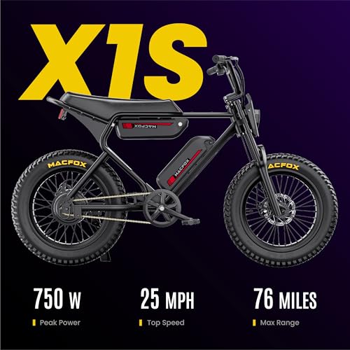 MACFOX Electric Bike for Adults - Peak 750W, 25MPH High-Speed Commuter Ebike, 30 Mile Range, 20" All-Terrain Fat Tires with Front Suspension, Off-Road/Campus E-Bicycle (X1S/Class 3)