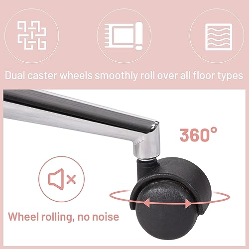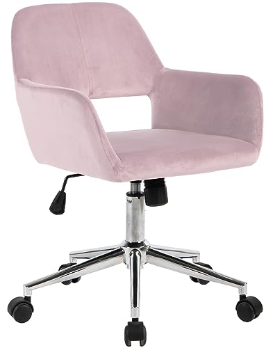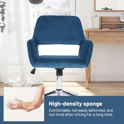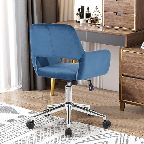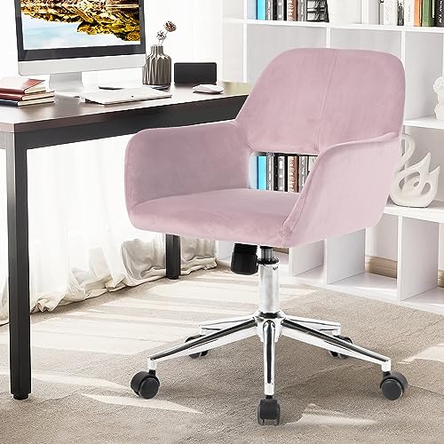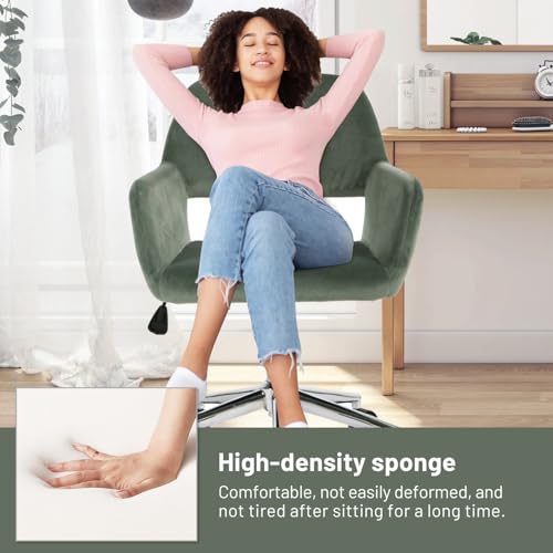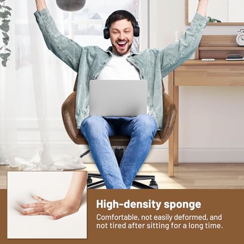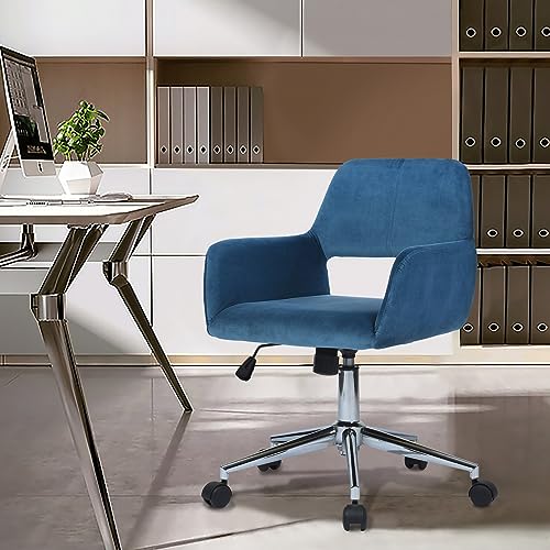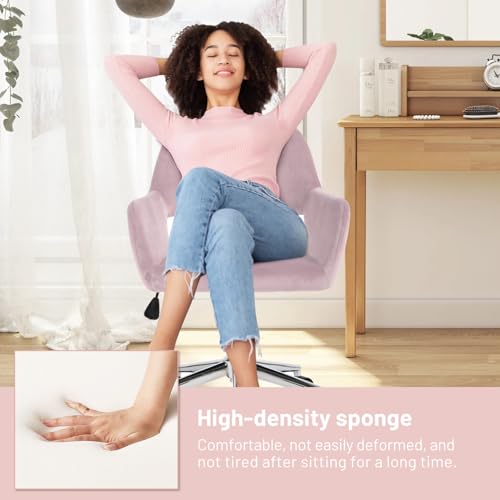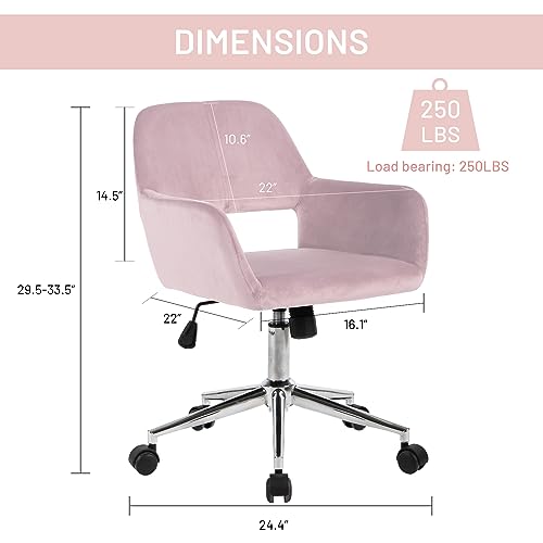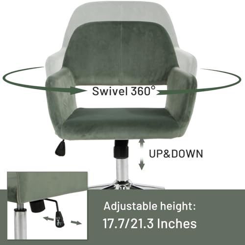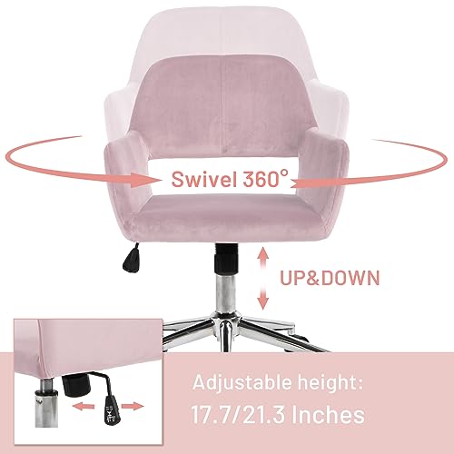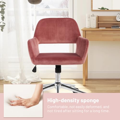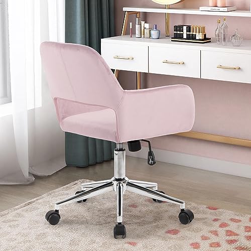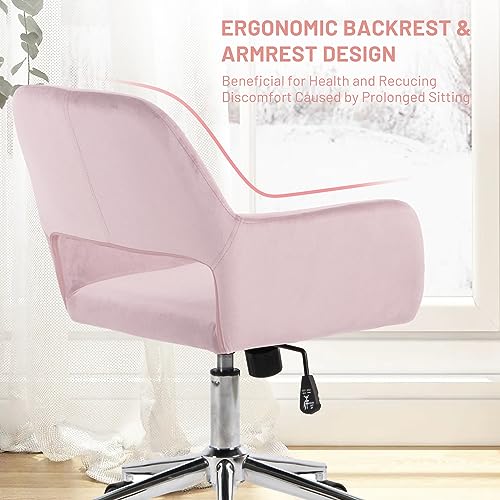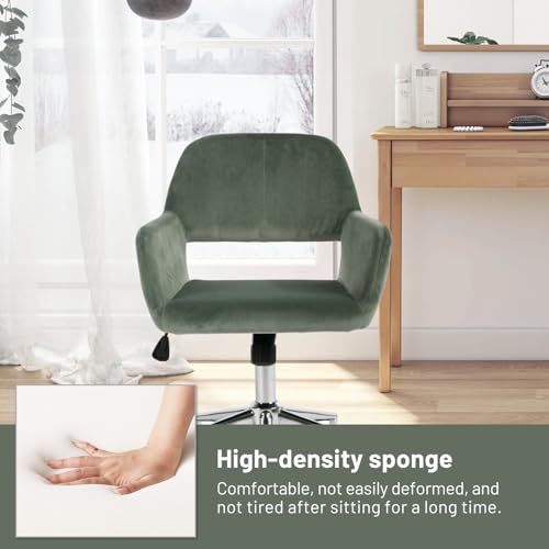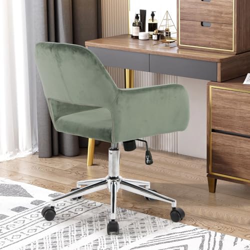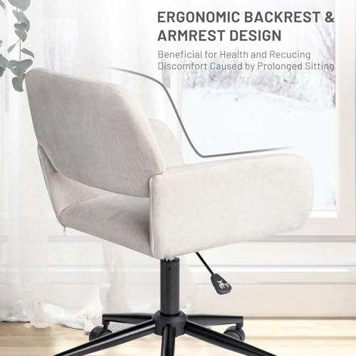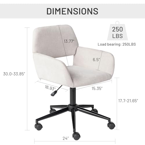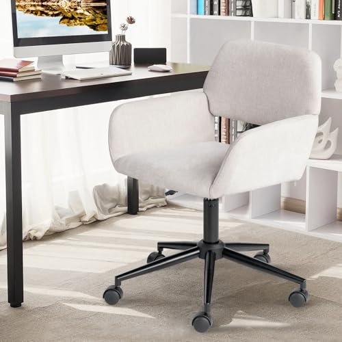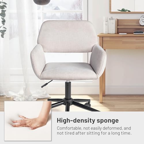 FurnitureR Home Office Chair, Fabric Upholstered Vanity Chairs with Rolling Wheels, Adjustable Study Desk Chair Mid Back Task Chair for Living Room, Bedroom, Small Spaces - Beige