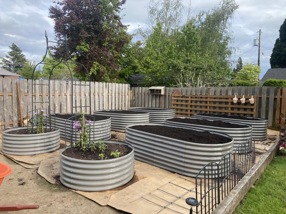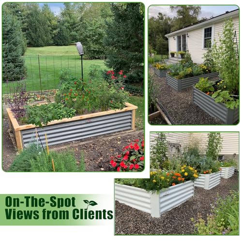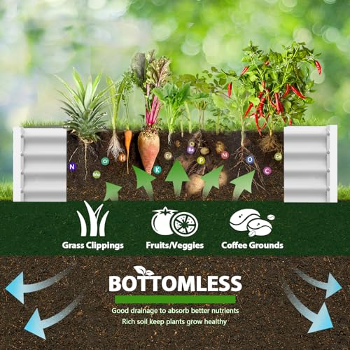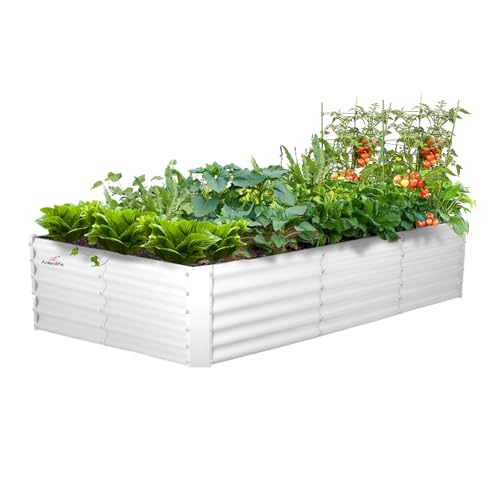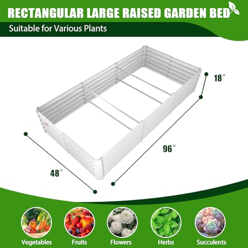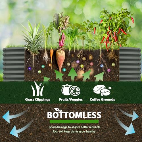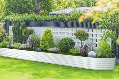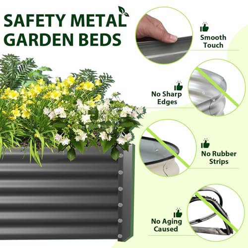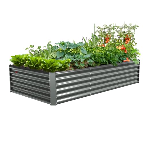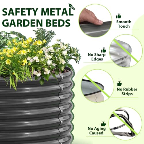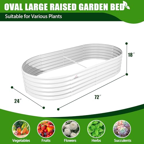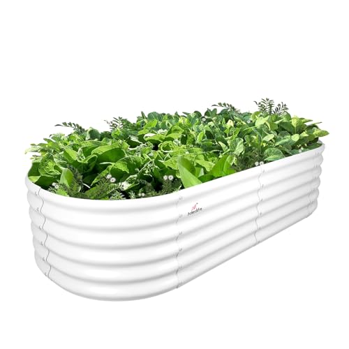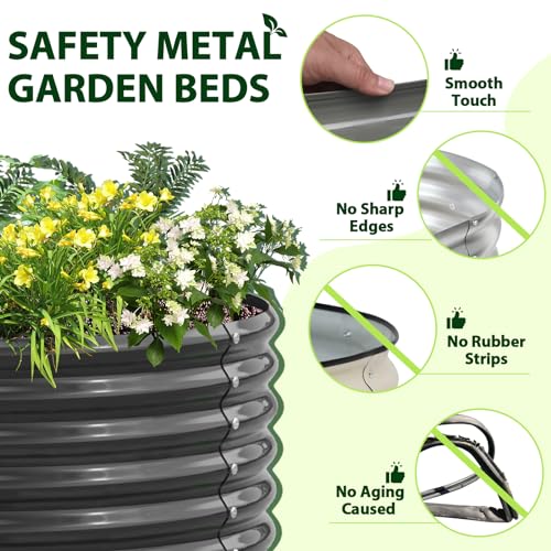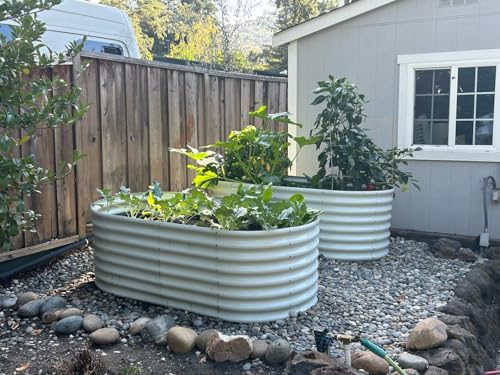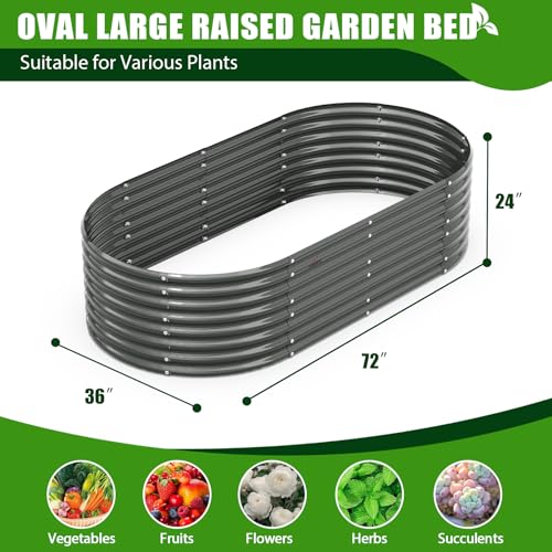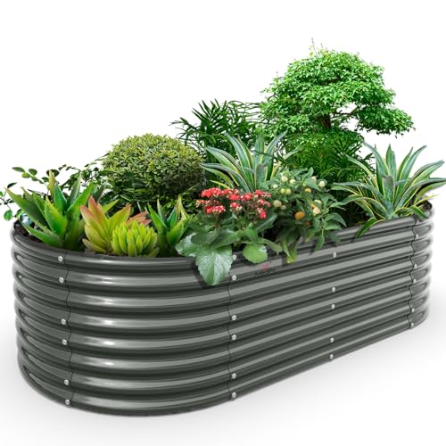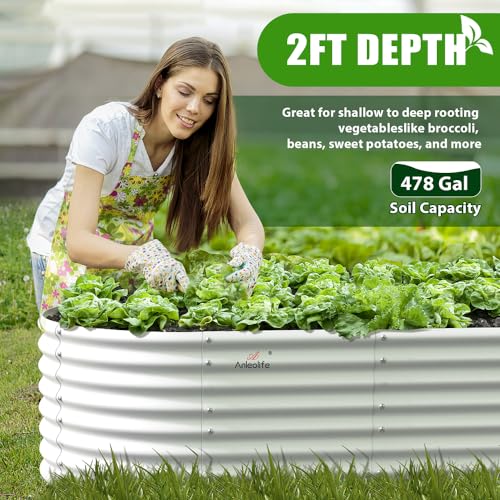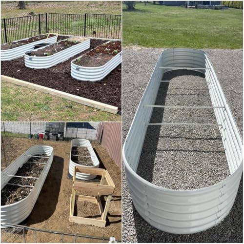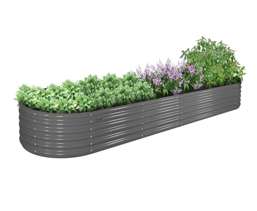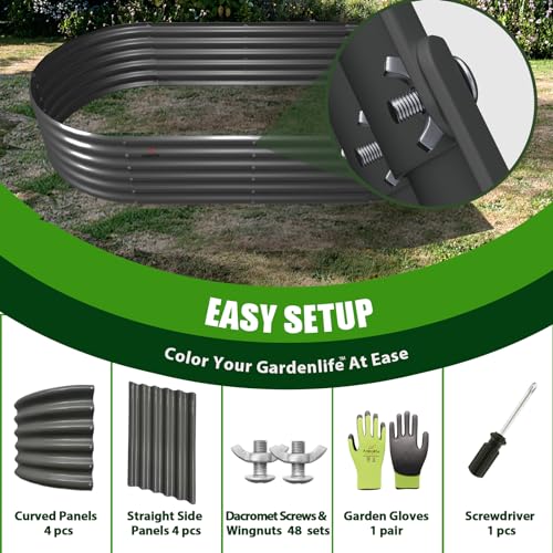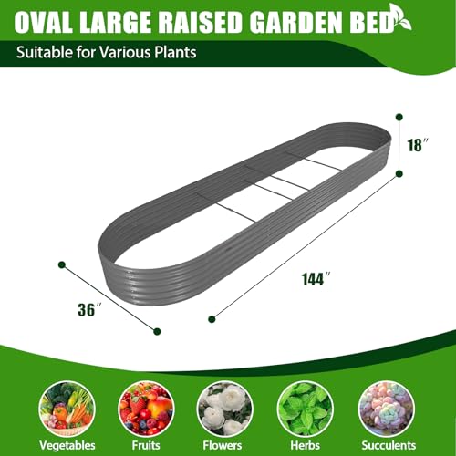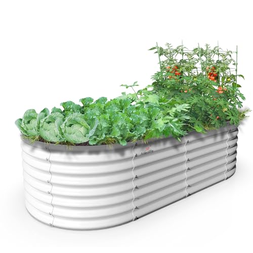A ANLEOLIFE 8X4X1.5 ft Galvanized Raised Garden Beds Outdoor, Oval Large Metal Planter Box for Planting Vegetables Flowers Herb, Anti-Rust & Easy-Setup, Quartz Grey