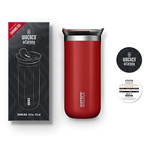 WACACO Octaroma Classico Vacuum Insulated Coffee Mug, Double-wall Stainless Steel Travel Tumbler With Drinking Lid, 6 fl oz (180ml), Carmine Red