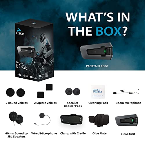 Cardo PACKTALK Edge Motorcycle Bluetooth Communication System Headset Intercom - Single Pack, Black