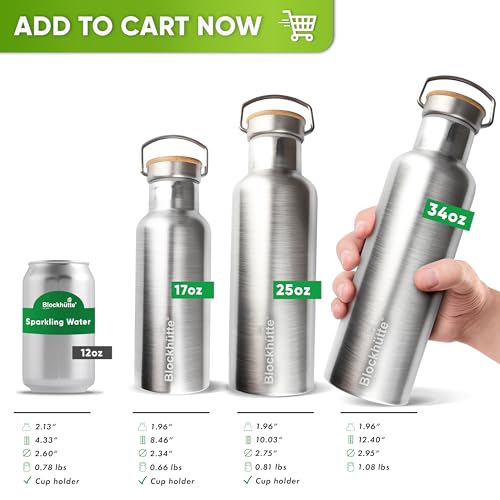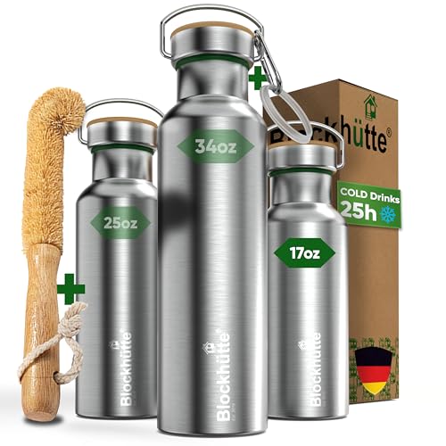 Blockhuette Vacuum Insulated Stainless Steel Water Bottle I 34 oz I Wide Mouth Insulated Metal Bottle for Cold Drinks I BPA-Free I Perfect for Travel, School, Kids, Adults, Water Canteen