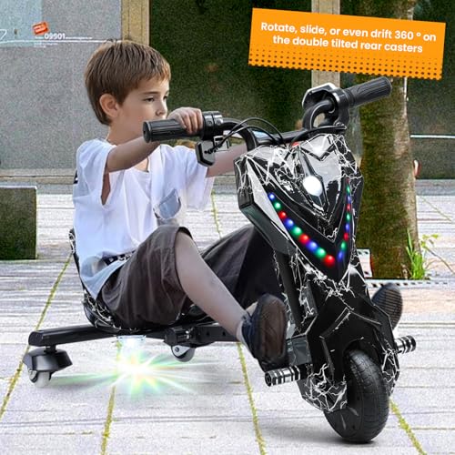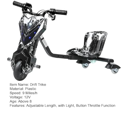 Electric Drift Trike for Kid,Adjustable Seat Big Wheel Drifting Go Cart,3-Wheel Scooter Drift Cart with 9 MPH Speed