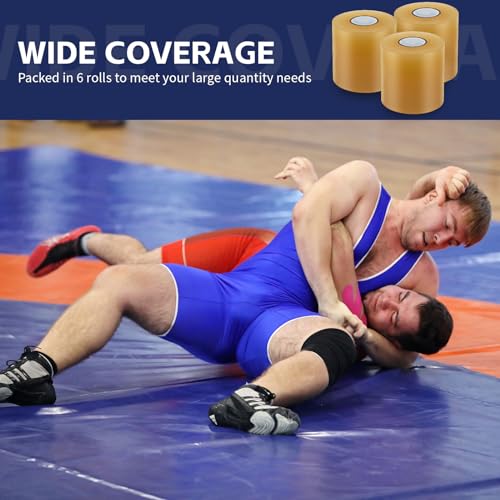 6 Rolls 4" x 108' Wrestling Mat Tape Gymnastics Floor Tape Wrestling Grappling Exercise Mats Seam Cover Tape, PVC 7 Mil Seam Cover Tape for Heavy Duty Carpet Jiu Jitsu Mats
