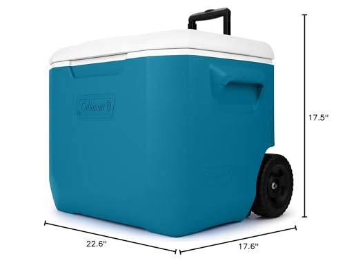 Coleman 60qt Rolling Cooler with Wheels, Insulated Portable Wheeled Chiller with Ice Retention, Made in USA