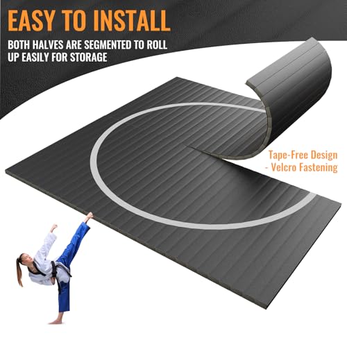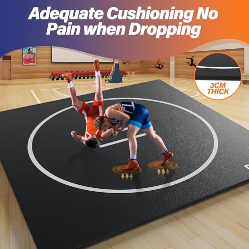 10' x 10' Wrestling Mat for Home Black Jiu Jitsu Wrestling Mats Durable Judo Mats for BJJ MMA Training Roll-Up Design Wrestling Mat for Grappling Martial Art Boxing Judo